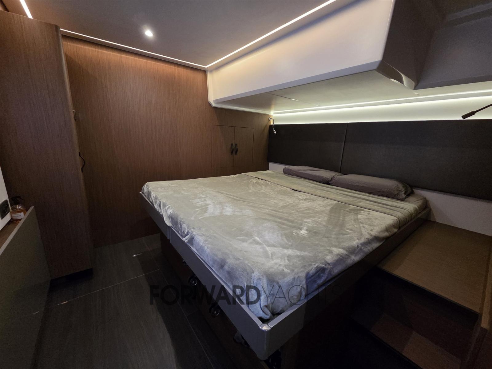 Consommation réduite grâce au moteur Volvo Penta D4 et grand volume avec une disposition de 3 cabines indépendantes.