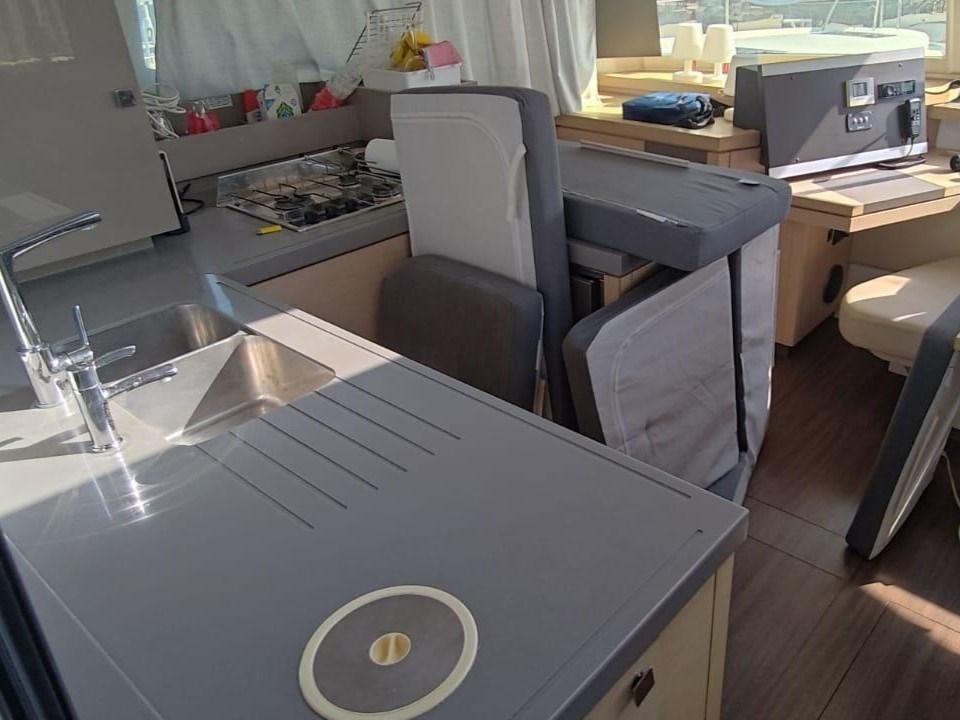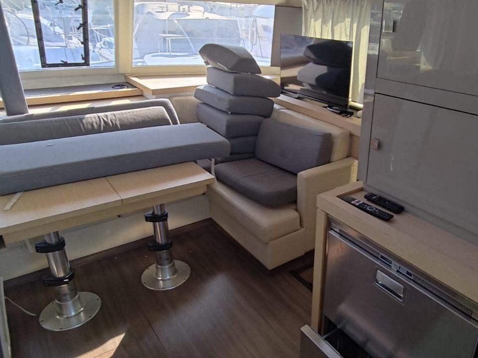 Eau Chaude, Ballon d'eau chaude, Air Conditionné, Dessalinisateur (OSMOSEA 60 L/H), Cuve à eaux noires, Convertisseur (2000W), 6 Prises interieures 12v, 5 Prises interieures 220v, Réservoir d'eau noire, 4 Toilettes électriques.