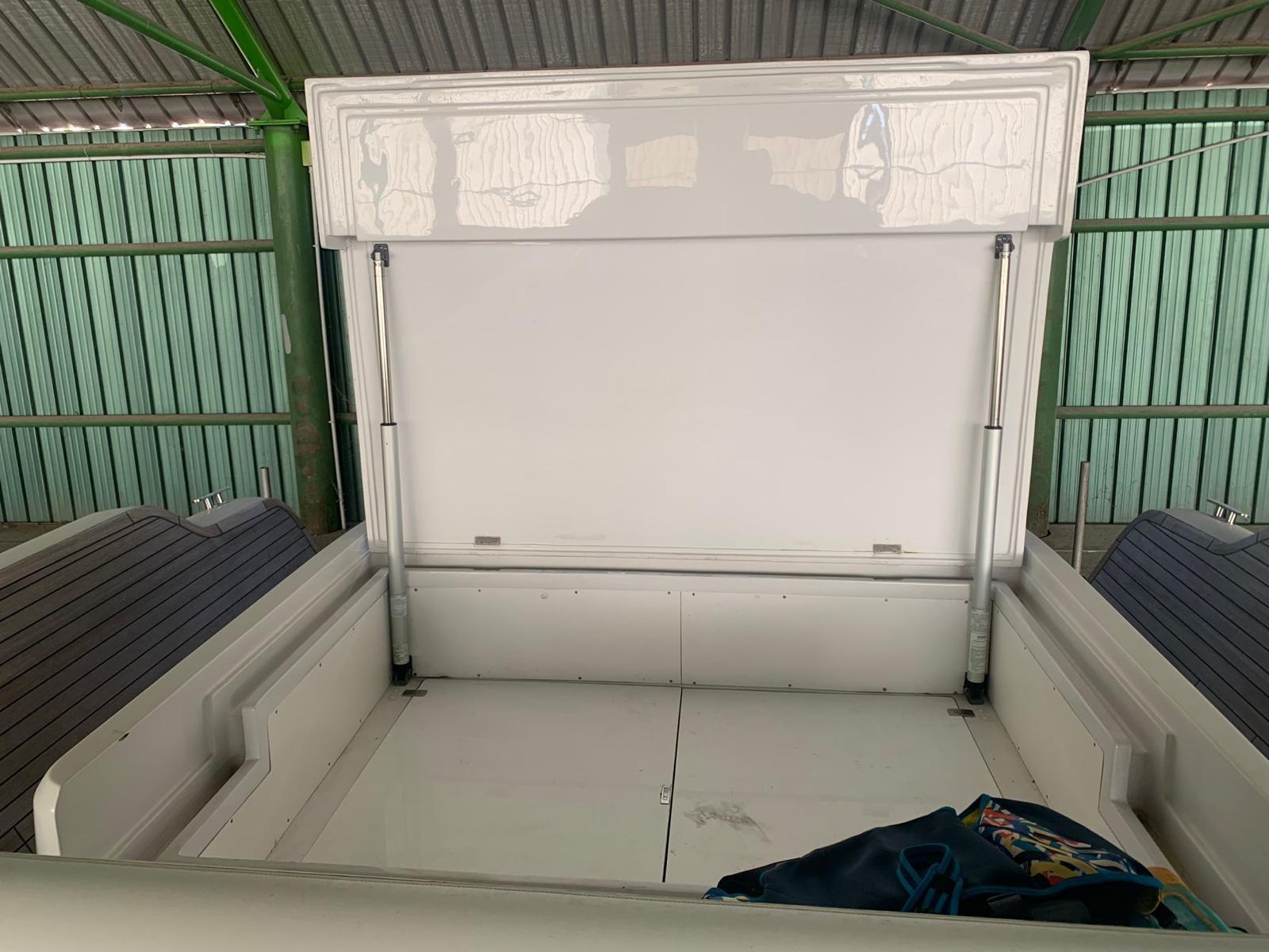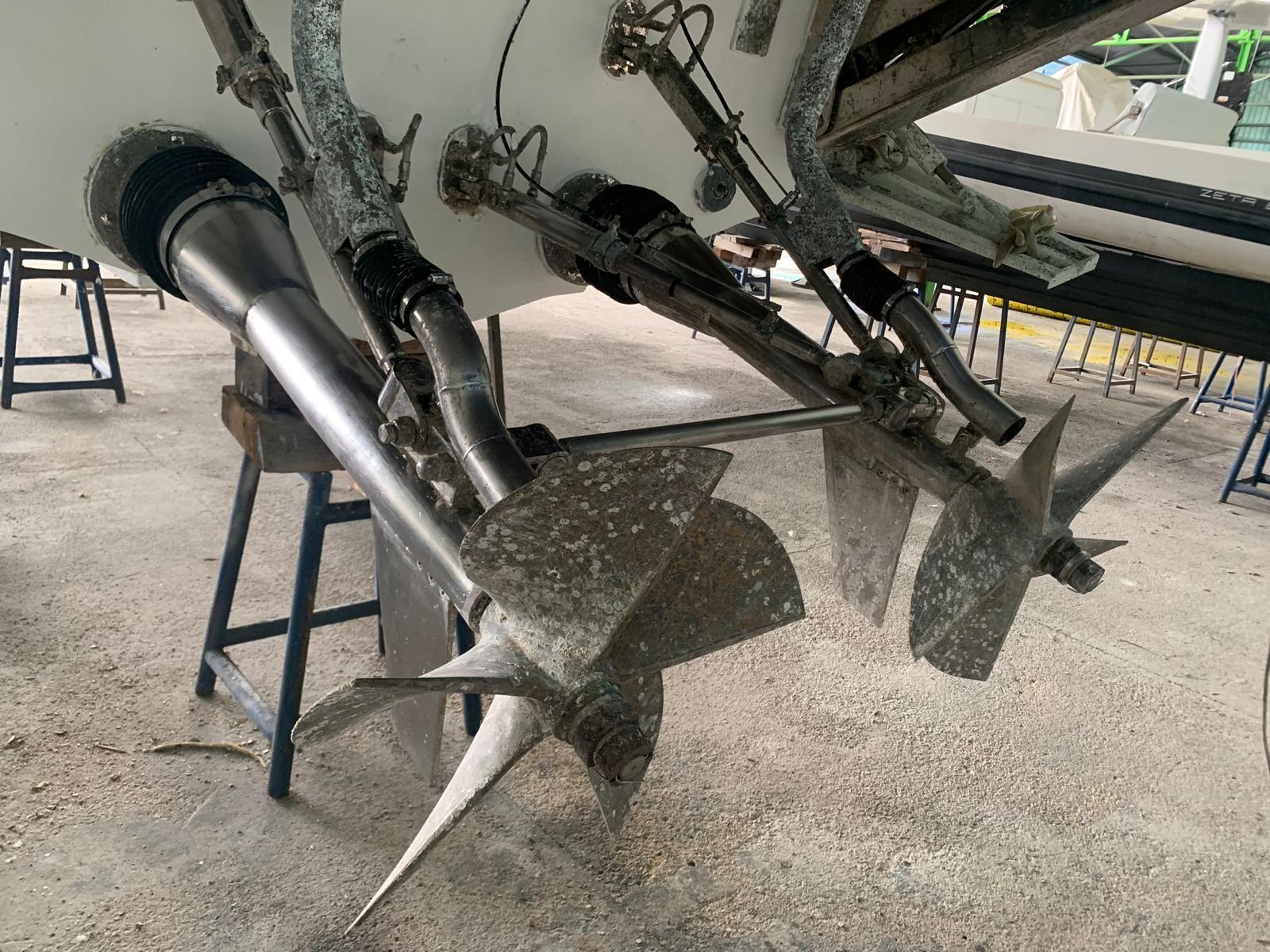 Douche de cockpit, Lavabo dans le cockpit, Plateforme arrière (IDRAULICA AFFONDANTE), Pompe de cale automatique, Prise de quai, Guindeau électrique.