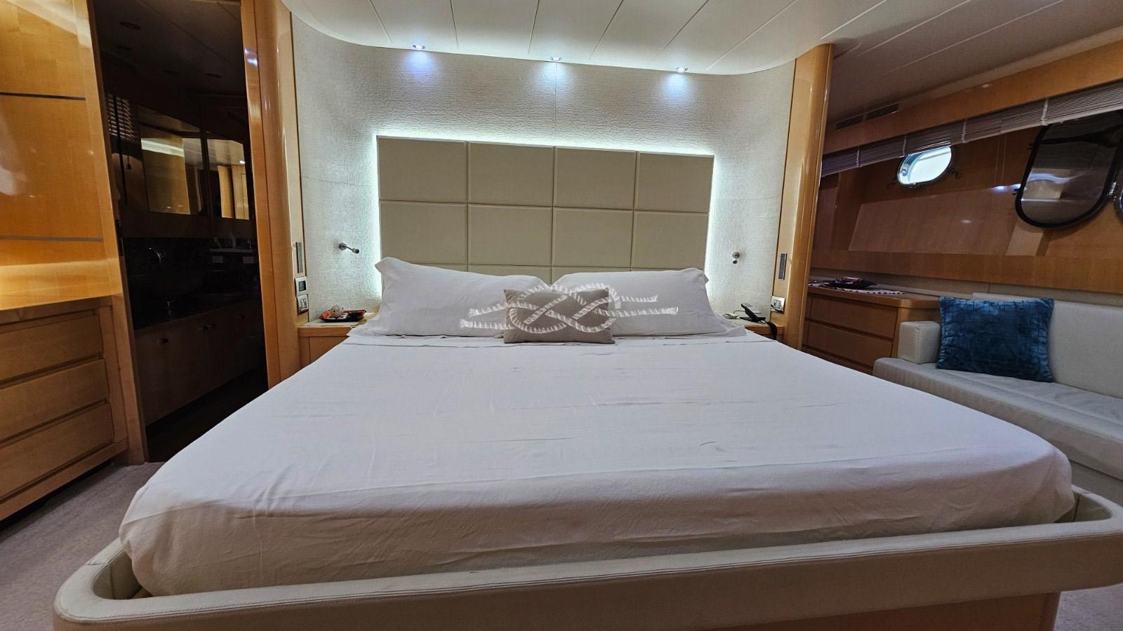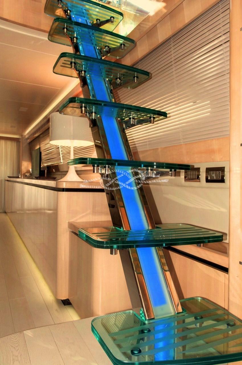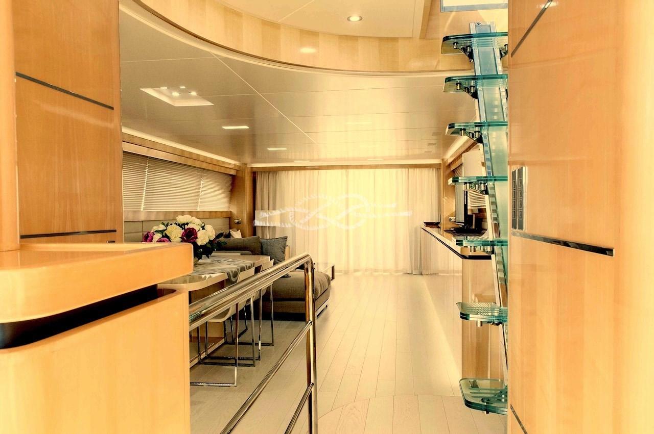Plateforme arrière pour tender - troisième poste de contrôle à la poupe - propulseur hydraulique à l’avant - passerelle hydraulique - climatisation Condaria dans toutes les cabines et salle des machines - Onan 2 générateurs de 27 kW - Machine à eau - antenne TV par satellite - TV dans le salon et dans toutes les cabines - TV rétractable dans le cockpit - escalier intérieur pour accéder à la porte volante - toilettes de jour - double réfrigérateur et congélateur - four - plaque électrique - double évier - plans de travail en marbre - machine à laver Miele - Sèche-linge Miele - coussins complets - pont solaire à la proue - toit bimini - garage tender à la poupe - jet tender - système Hammann de traitement des eaux noires - bar humide à la volée avec évier, réfrigérateur tiroir en acier inoxydable et machine à glace - Système audio fusion sur la passerelle aérienne.