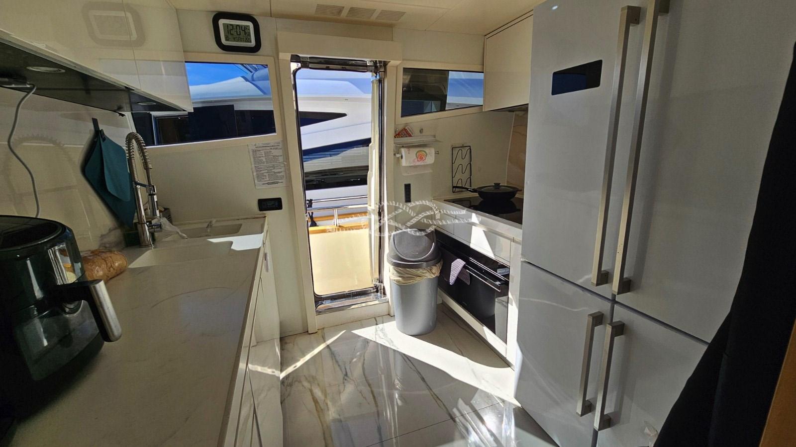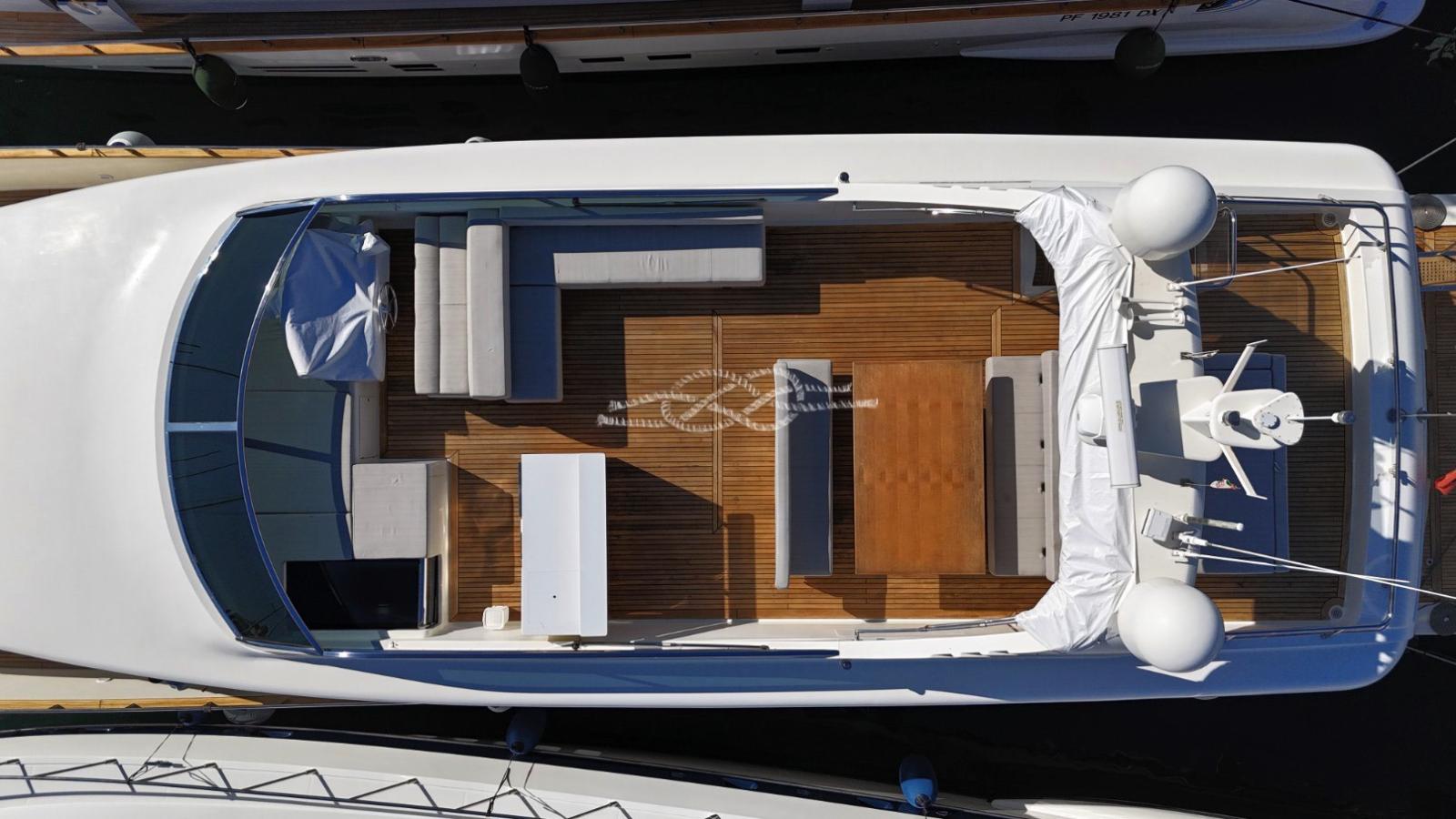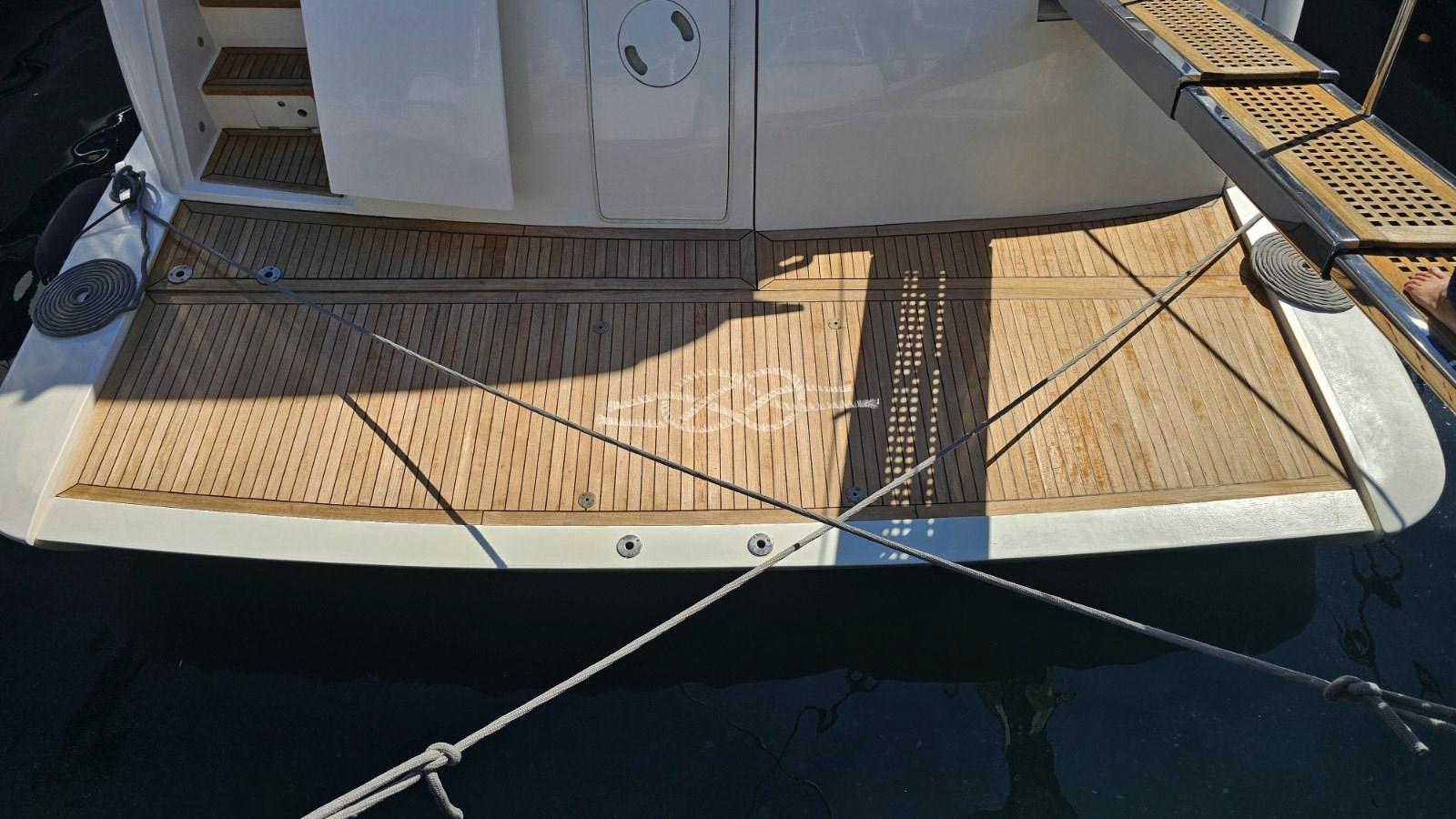 remplacement de tout le cuir de la sellerie intérieure du salon et des cabines par du cuir clair - remplacement de la moquette de l’habitacle - parquet dans le salon et la timonerie - remplacement de tous les projecteurs par des lumières LED (intérieures et extérieures) - nouveau canapé dans le cockpit - laque légère du mobilier de cuisine - remplacement du réfrigérateur de cuisine (en acier) - remplacement de la table à manger et de la table à manger par deux nouvelles tables en érable - remplacement de toutes les plaques d’interrupteurs internes - remplacement de Toutes les tentes et cabines de salon - nouvel auvent bimini sur le pont volant - nouveau lave-vaisselle.