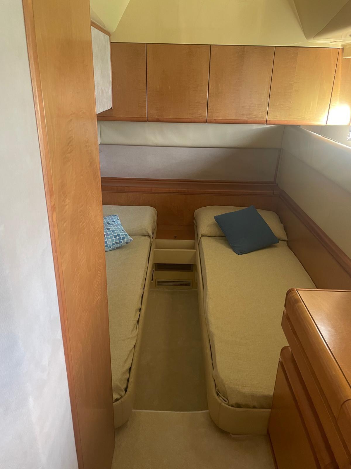 Cabine principale avec lit double et salle de bain - cabine d’invités avec deux lits plats transformables en lit double et salle de bain - cabine d’invités avec deux lits plats et salle de bain.