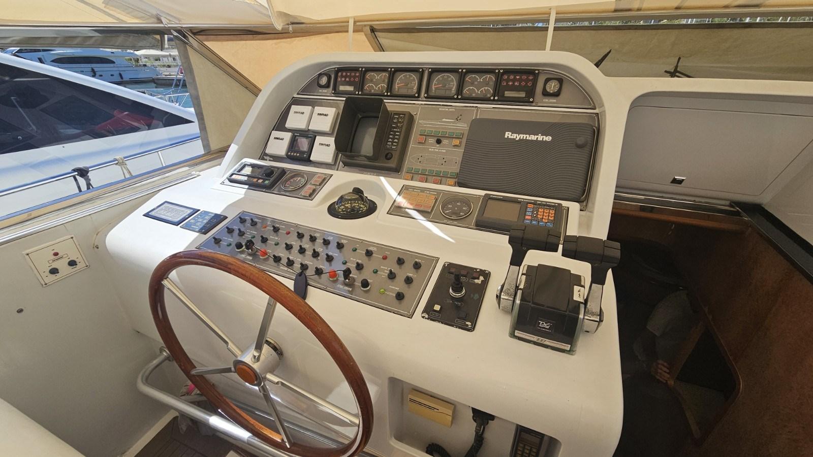 Climatisation Condaria - 2 groupes électrogènes Kohler de 15 kW - passerelle électro-hydraulique escamotable - garage à annexe arrière - annexe avec hors-bord - propulseur d’étrave hydraulique - antenne TV satellite - TV LCD - dessalinisateur - meuble bar de cockpit avec évier et réfrigérateur - réfrigérateur - congélateur - plaque de cuisson électrique 4 brûleurs - lave-vaisselle - chaîne stéréo - machine à glaçons - compresseur d’air.