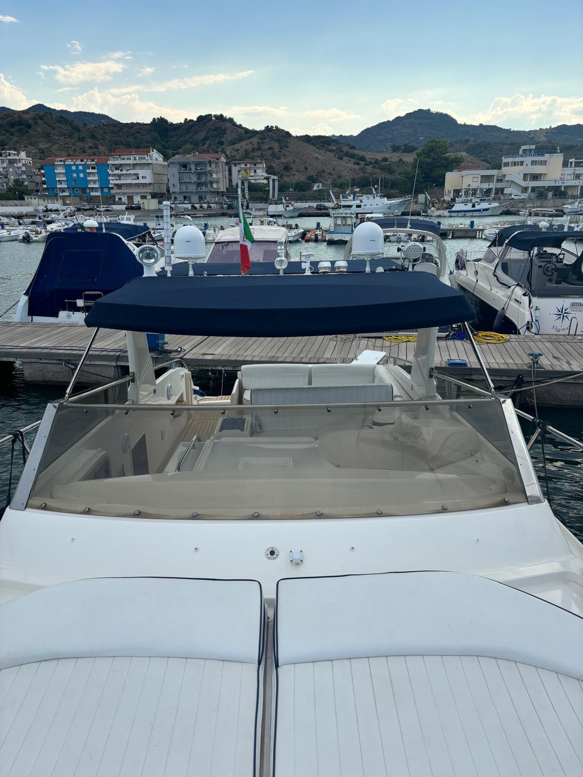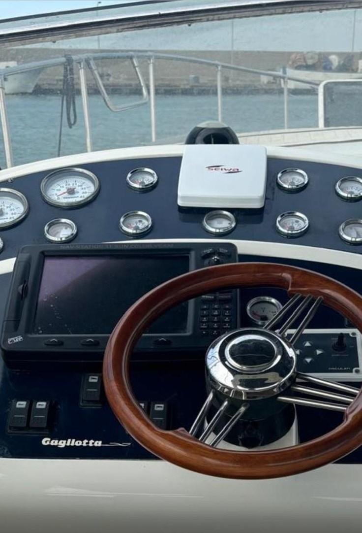 Passerelle tournante électro-hydraulique - Générateur Paguro 3 kW - Auvent avec structure fixe - Antenne TV - TV LCD - Cuisine avec évier, réfrigérateur et micro-ondes en acier inoxydable - Réfrigérateur dans le cockpit - Propulseur d’étrave.