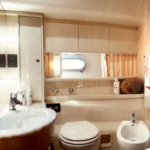 Alarme moteur, Alarme de pompe de cale, Eau sous pression, Passavant en teck, Douche de cockpit, Flaps hydrauliques, Extincteur(s) fixe(s), Éclairage de courtoisie, Passerelle, Plateforme arrière, Porte latérale, Cockpit en teck, Prise de quai, Connexion eau sous pression à quai, Rollbar, Guindeau électrique, Echelle de bain, table de cockpit, Annexe, Corne, Winch électrique arrière.
