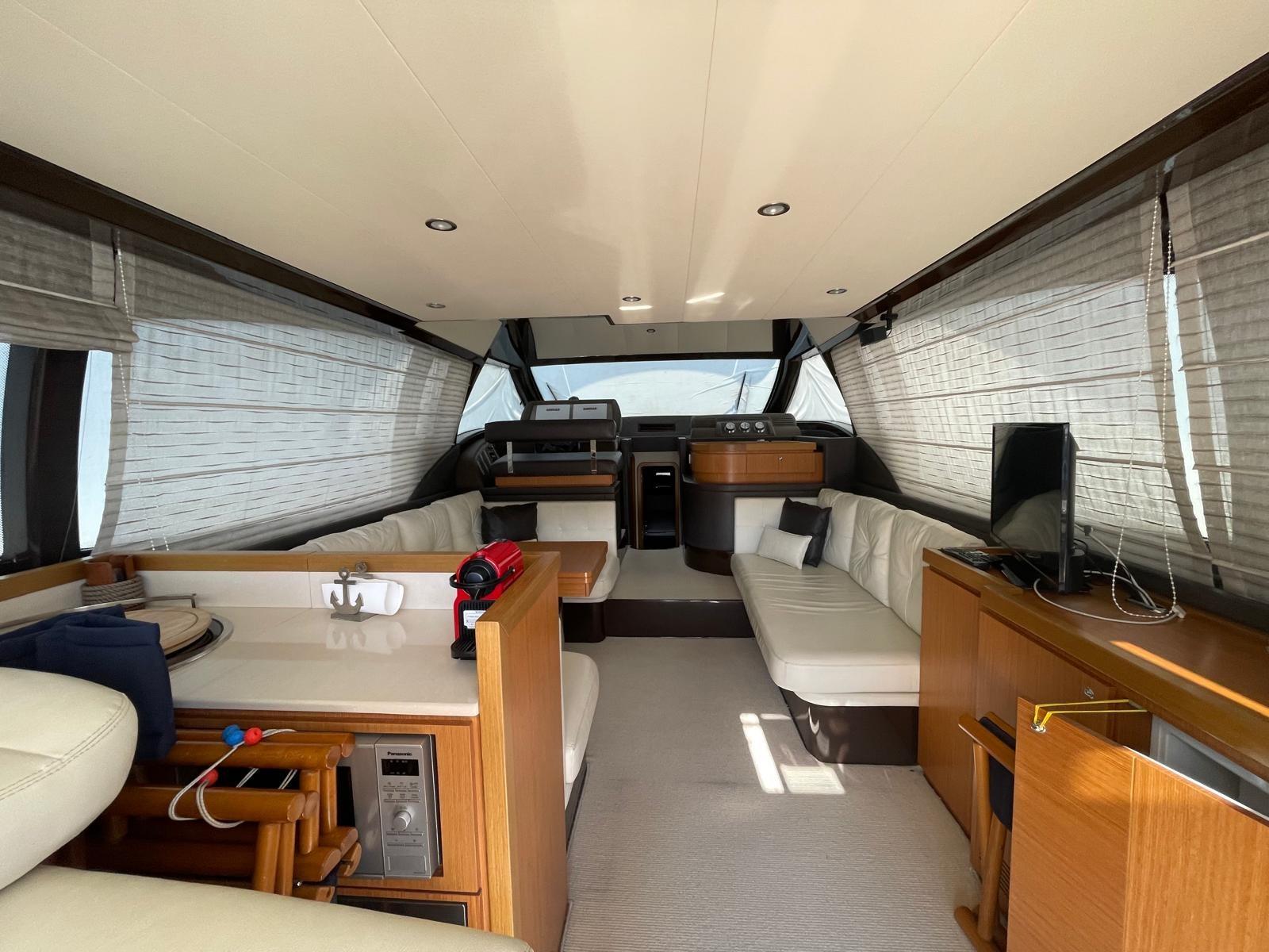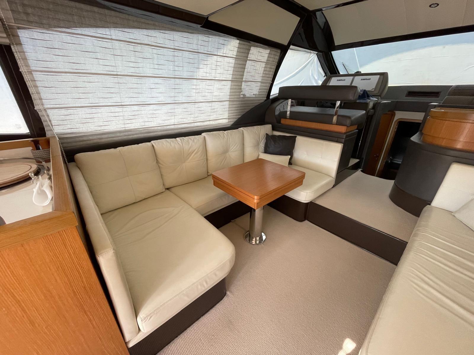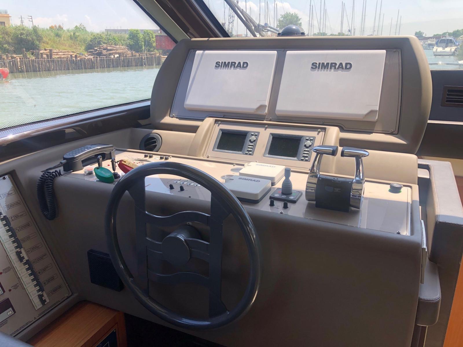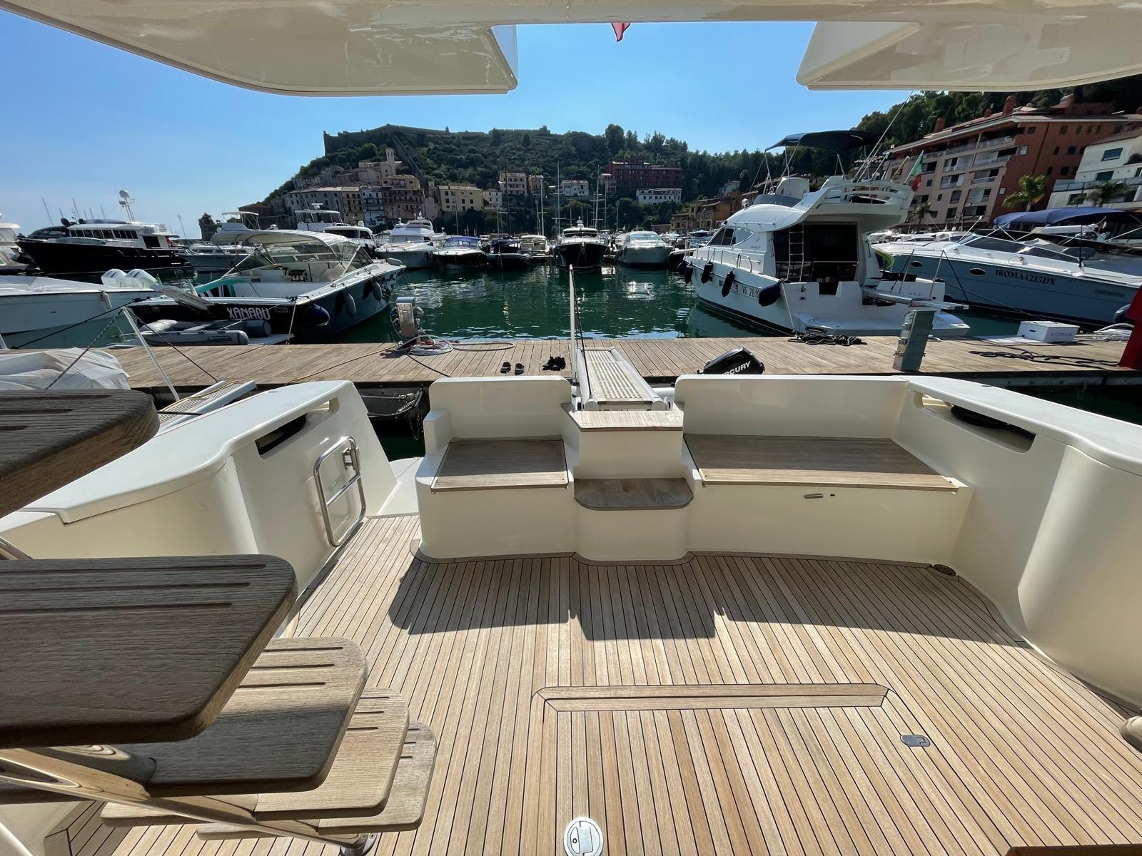Alarme moteur, Alarme de pompe de cale, Eau sous pression, Douche de cockpit, Double barre à roue, Flaps hydrauliques, Extincteur(s) fixe(s), Indicateurs de flaps, Éclairage de courtoisie, Passerelle, Plateforme arrière, Porte latérale, Cockpit en teck, Prise de quai, Connexion eau sous pression à quai, Rollbar, Guindeau électrique, Echelle de bain, table de cockpit, Corne, Winch électrique arrière.