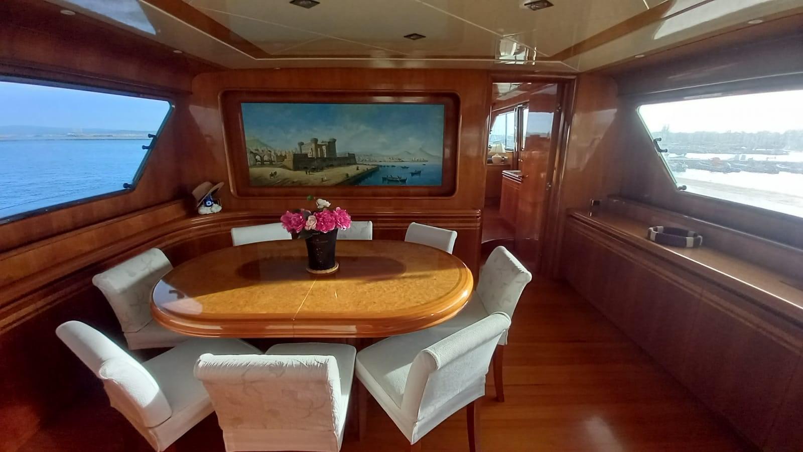 Travaux 2022 - 2023 : rénovation du flying bridge en teck - rénovation des canapés du flying bridge - nouveaux tissus d’ameublement extérieurs Sunbrella et éponges de housse de coussin - nouvelle moquette - nouveaux rideaux - rénovation des portes de cuisine - nouveaux appareils de cuisine (plaque de cuisson, four, réfrigérateur, hotte, lave-vaisselle) - entretien courant des moteurs et des générateurs - nouvelles batteries et moteurs de service - nouvelles batteries de propulseur d’étrave - nouveaux interrupteurs d’éclairage internes et externes - révision du piston des volets - nouveaux feux LED Sous l’eau - révision de la passerelle avec remplacement de la carte, de la pompe et des capteurs.