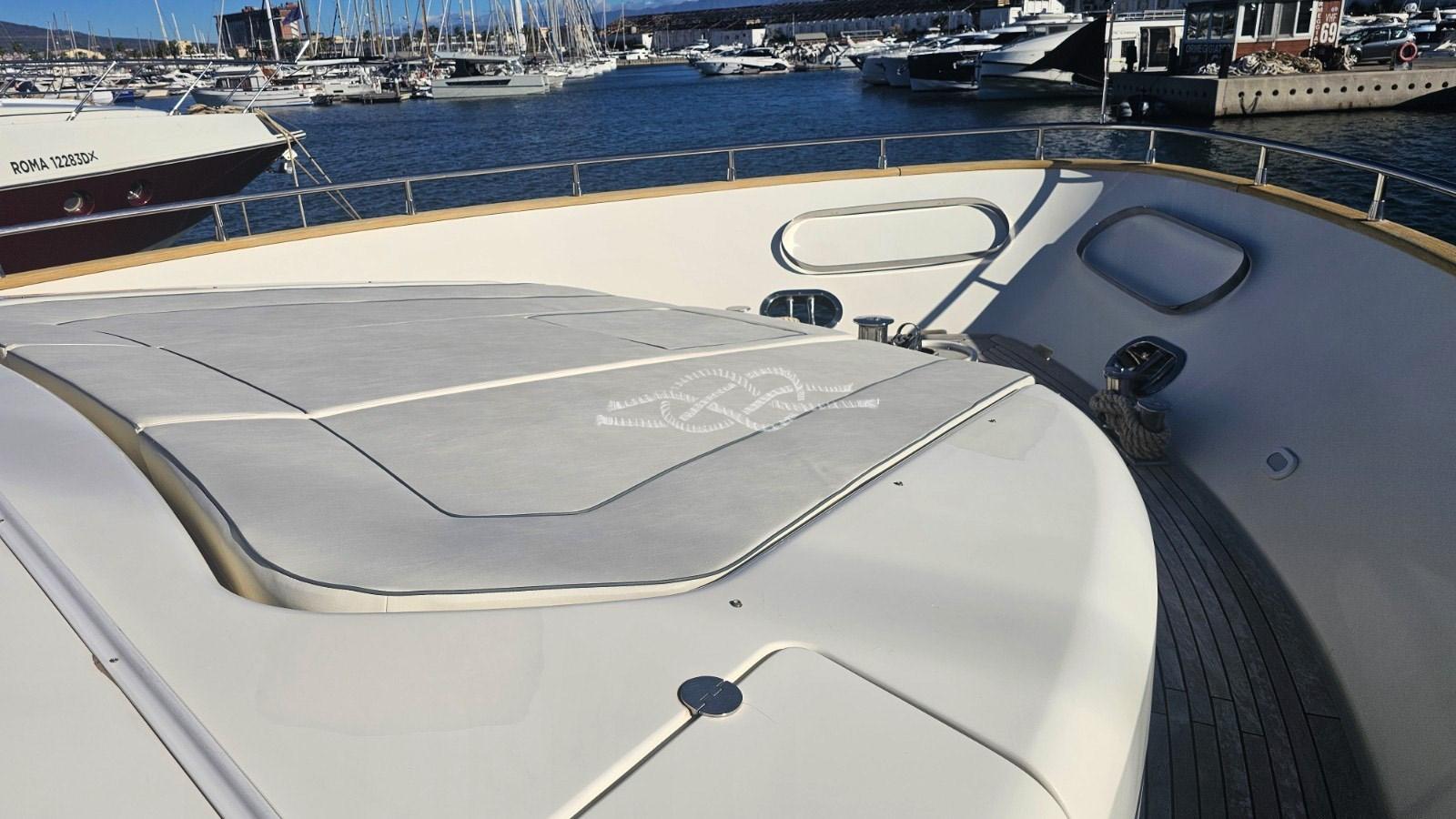 Alarme moteur, Alarme de pompe de cale, Eau sous pression, 16 Batteries, Système de vidange, Passavant en teck, Douche de cockpit, Double barre à roue, Phare de poursuite, Flaps hydrauliques, Grue de flybridge, Extincteur(s) fixe(s), Indicateurs de flaps, Lavage de chaine, Spots sous-marins, Passerelle (elettroidraulica a scomparsa), Plateforme arrière, Pompe de cale automatique, Porte latérale, Porte latérale, Cockpit en teck, Prise de quai, Connexion eau sous pression à quai, Rollbar, Guindeau électrique, Echelle de bain, Selles pour Annexe, table de cockpit, Annexe (Capelli con fuoribordo), Filières avec sortie latèrale, Corne, Winch électrique arrière.