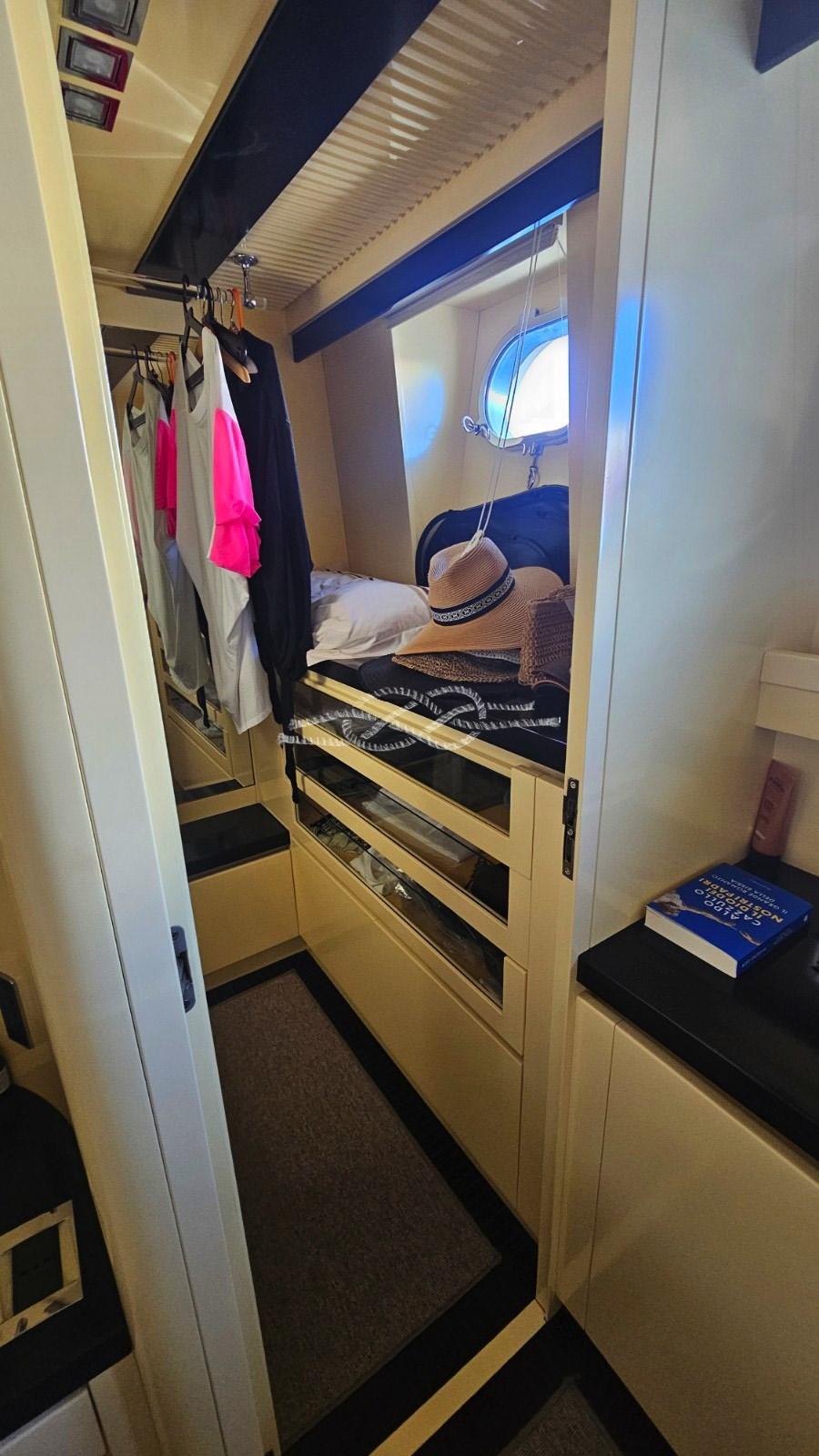 Cabine principale avec lit double, dressing, salle de bain avec douche et bidet séparés - cabine VIP avec deux lits plats, dressing, salle de bain avec douche et bidet séparés - cabine d’invités avec deux lits plats et troisième lit escamotable, salle de bain avec douche et bidet séparés (la salle de bain a un accès double afin de servir également de salle de bain pour les invités) - cabine d’invités avec deux lits plats et un troisième lit escamotable, Salle de bain avec douche séparée et bidet.