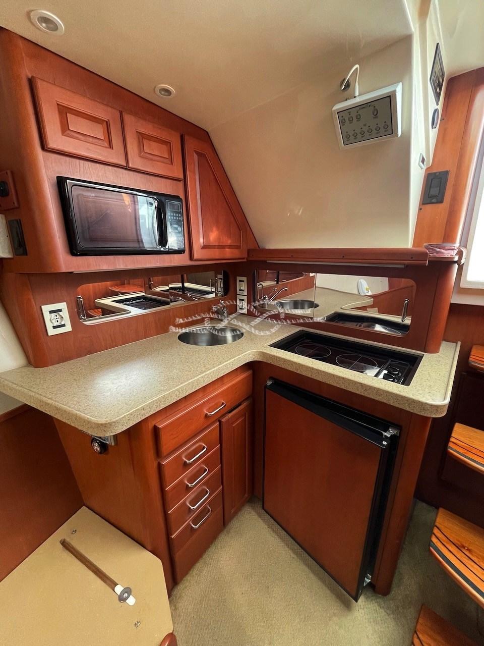 Alarme moteur, Auto Dynamic Trim Interceptor, Eau sous pression, Douche de cockpit, Double barre à roue, Phare de poursuite, Flaps électriques, Extincteur(s) fixe(s), Indicateurs de flaps, Lavabo dans le cockpit, Plateforme arrière, Prise de quai, Répétiteur électronique, Guindeau électrique, Echelle de bain, Corne.