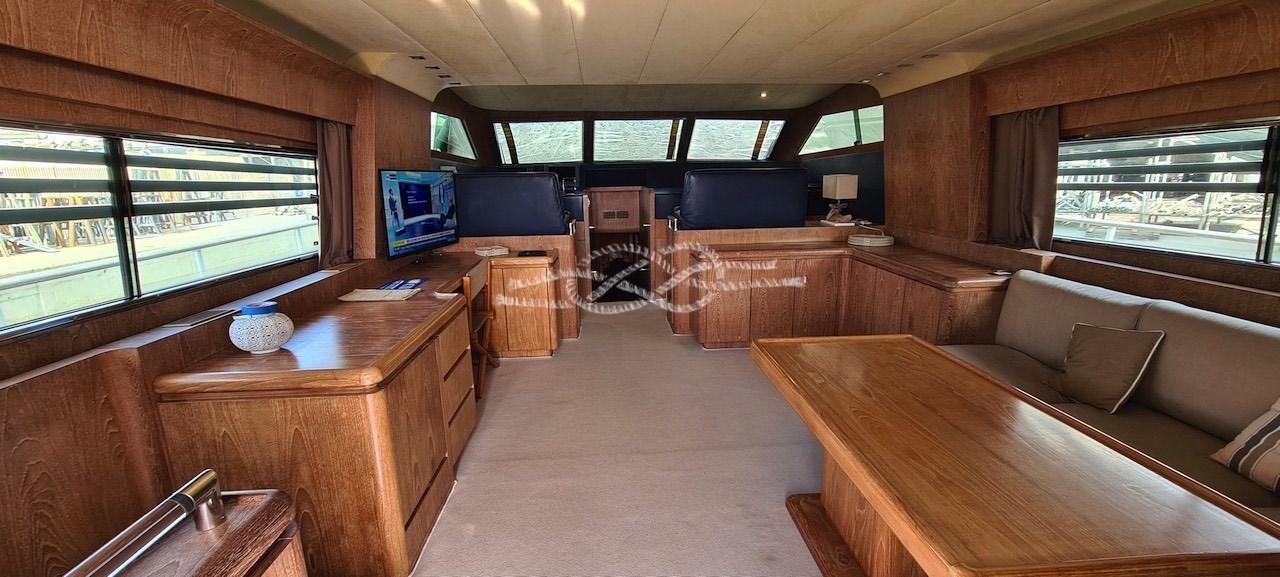 Alarme moteur, Alarme de pompe de cale, Eau sous pression, Passavant en teck, Douche de cockpit, Double barre à roue, Flaps hydrauliques, Indicateurs de flaps, Lavage de chaine, Passerelle, Plateforme arrière, Porte latérale, Prise de quai, Connexion eau sous pression à quai, Guindeau électrique, Echelle de bain, table de cockpit, Annexe, Corne, Winch électrique arrière.