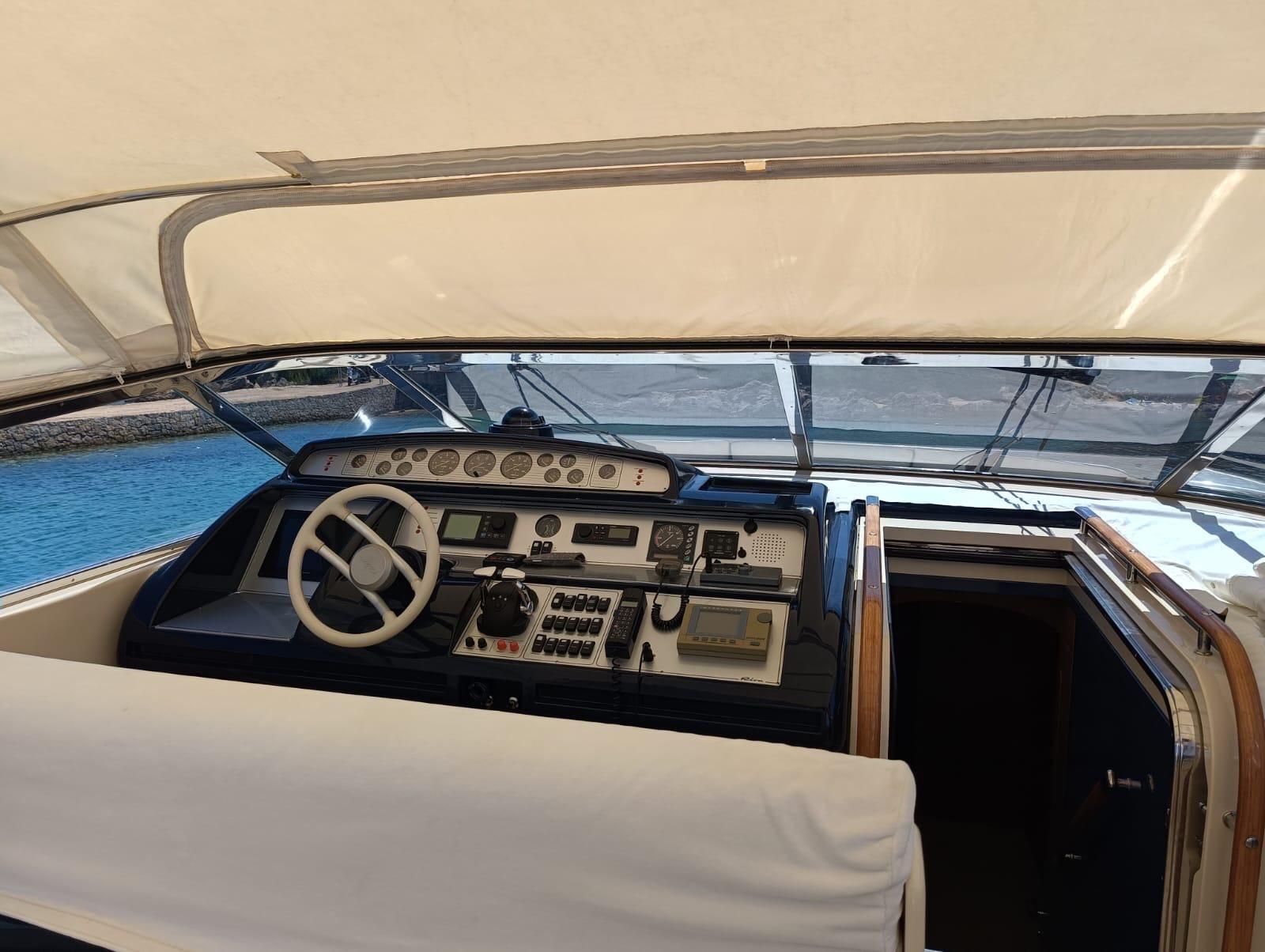 révision de la trappe de la cabine propriétaire - révision du système d’eaux noires - pare-brise en silicone - révision des toilettes de la cabine équipage - révision de la passerelle Besenzoni.