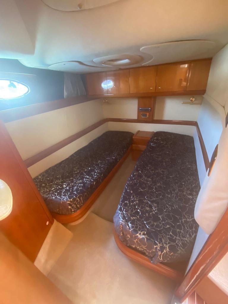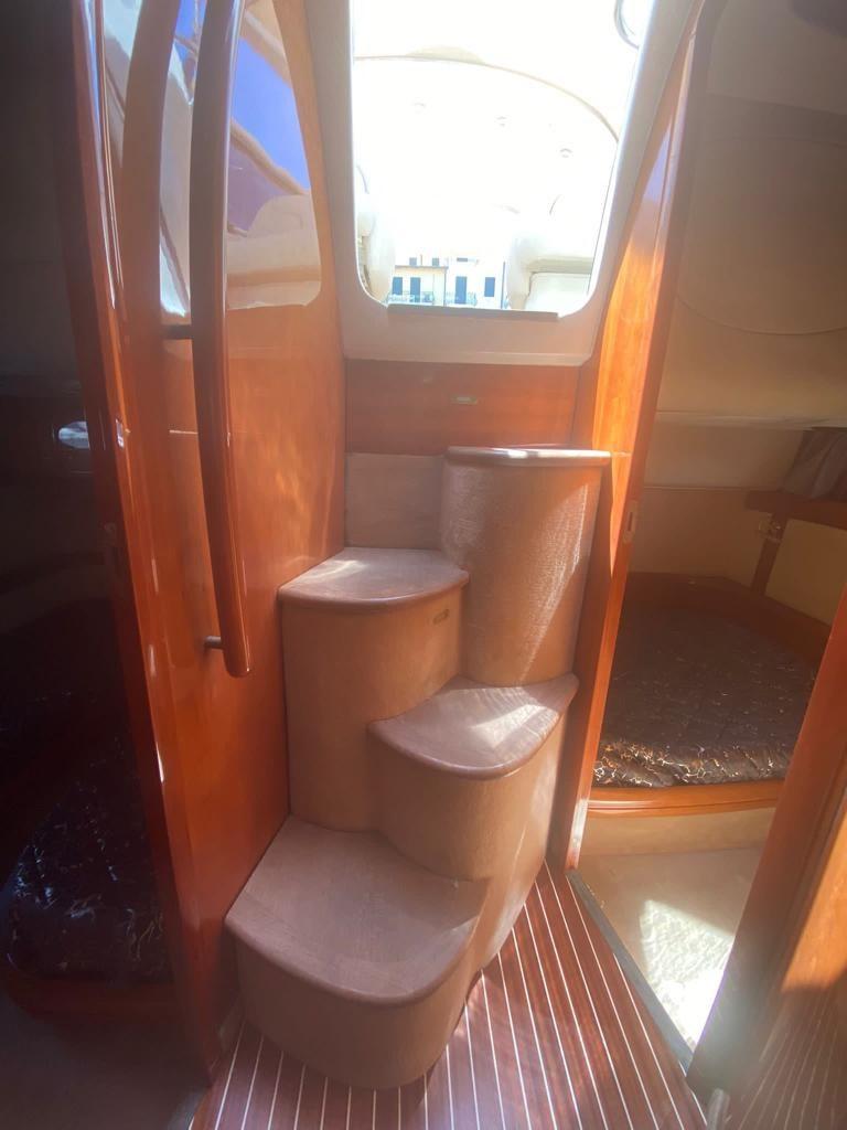 Alarme gaz, Alarme moteur, Alarme de pompe de cale, Eau sous pression, Douche de cockpit, Flaps hydrauliques, Garage à annexe, Indicateurs de flaps, Lavabo dans le cockpit, Éclairage de courtoisie, Passerelle, Plateforme arrière, Pompe de cale automatique, Pompe de cale manuelle, Cockpit en teck, Prise de quai, Connexion eau sous pression à quai, Onduleur, Guindeau électrique, Echelle de bain, table de cockpit, Winch électrique arrière.