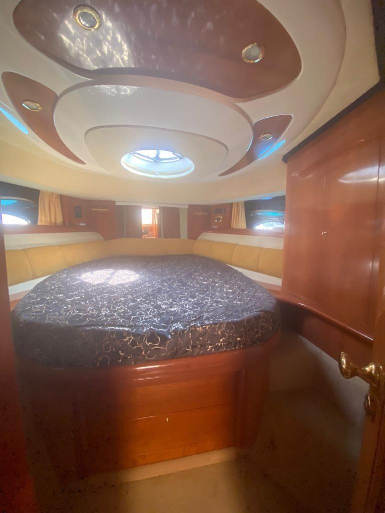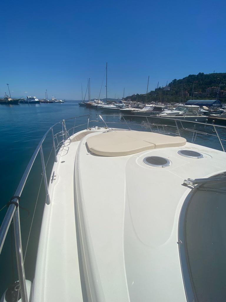 Climatisation - propulseur d’étrave - passerelle hydraulique - générateur Kohler 7,5 kW - coussins de soleil complets - auvent - kitchenette avec plaque vitrocéramique - four à micro-ondes - système TV - chaîne stéréo - armoire extérieure avec plaque vitrocéramique et réfrigérateur - échelle de bain - garage pour annexe.