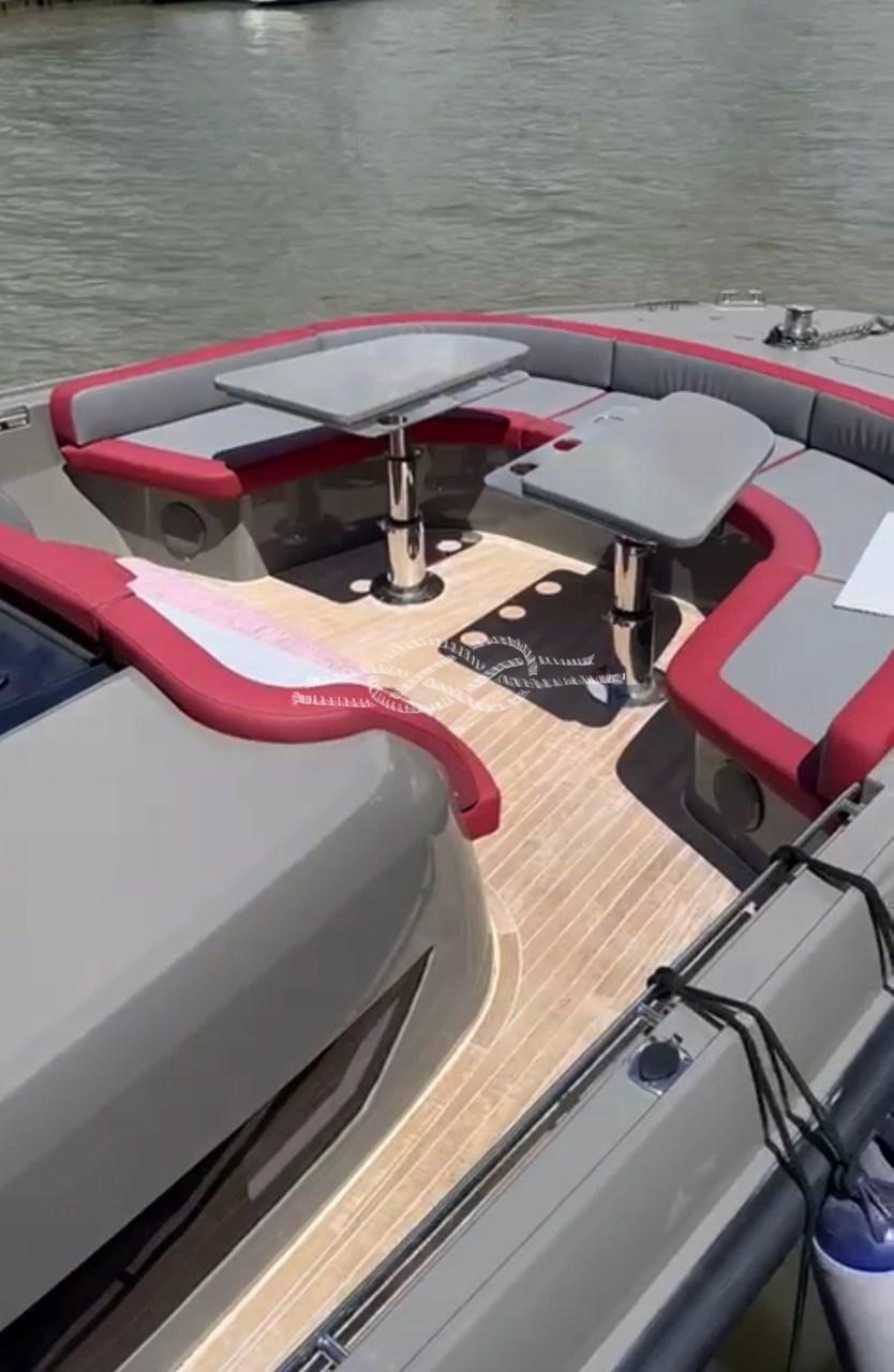 Douche arrière - auvents manuels avec poteaux en carbone pour poupe et dinette avant - armoire de cuisine dans le cockpit avec réfrigérateur / congélateur, évier et plaque électrique deux brûleurs - passerelle manuelle - platelage en teck - générateur Dynamica 6 kW - climatisation - dinette arrière électriquement convertible en solarium - dinette avant convertible en solarium - t-top en carbone - chargeur de batterie - onduleur.