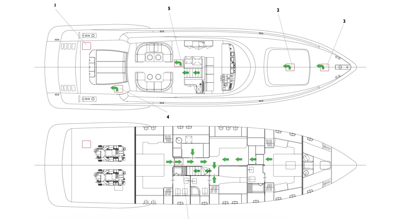 Alarme gaz, Alarme moteur, Alarme de pompe de cale, Alternateur, Eau sous pression, Système de vidange, Passavant en teck, Douche de cockpit, Phare de poursuite, Flaps hydrauliques, Garage à annexe, Hard top, Extincteur(s) fixe(s), Indicateurs de flaps, Lavage de chaine, Lavabo dans le cockpit, Éclairage de courtoisie, Spots sous-marins, Passerelle, Plateforme arrière, Pompe de cale automatique, Pompe de cale manuelle, Pont en teck, Cockpit en teck, Prise de quai, Connexion eau sous pression à quai, Onduleur, Guindeau électrique, Echelle de bain, Selles pour Annexe, table de cockpit, Annexe, Corne, Winch électrique arrière.