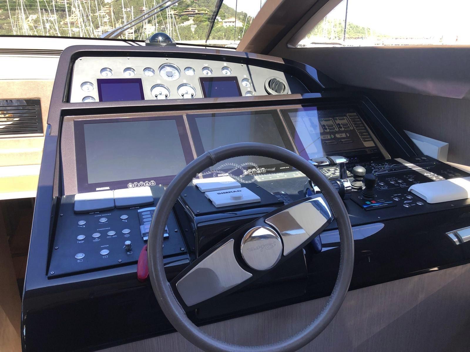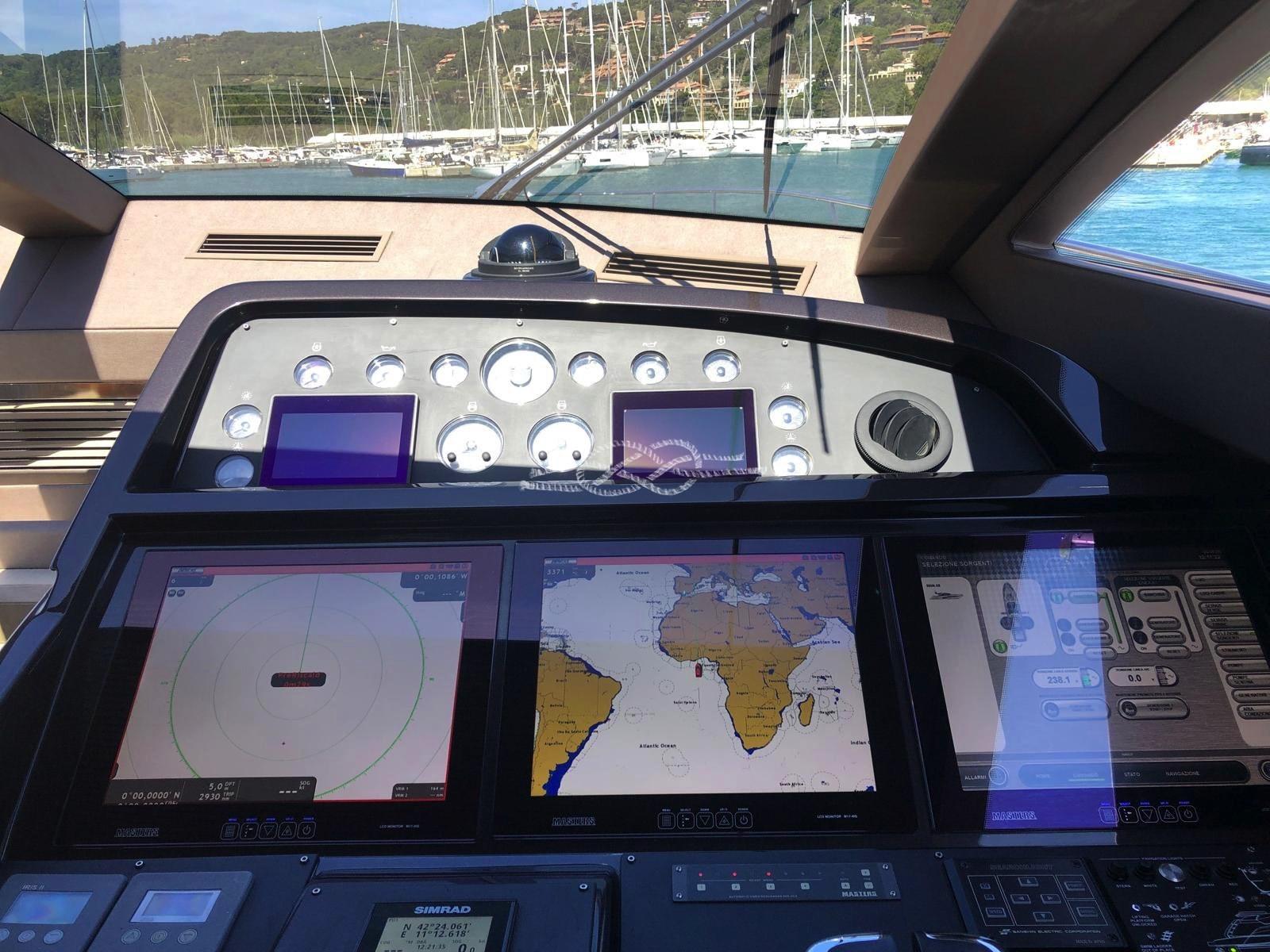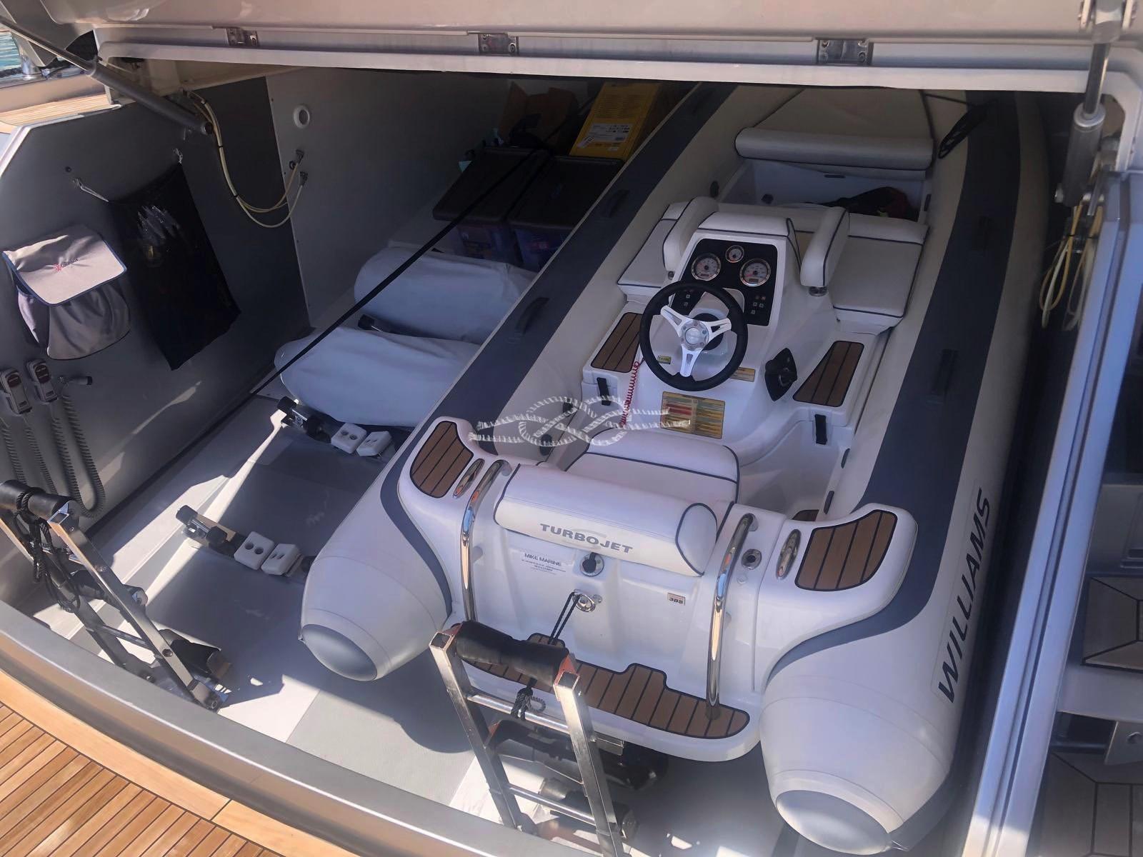 Deux stabilisateurs Seakeeper 9 - Propulseurs hydrauliques d’étrave et de poupe ABTrac - Passerelle électro-hydraulique rétractable - Double ancre - Élévateur d’annexe, plate-forme arrière - Garage d’annexe pour annexe et jet-skis - Annexe à jet Williams 385 - Antenne TV satellite - TV LCD - stéréo - climatisation Condaria chaud/froid - 2 x 28 kW Générateurs Kohler - troisième poste de commande à l’arrière - Plaque à induction 4 brûleurs Miele - Four Miele - réfrigérateur - congélateur - Lave-vaisselle Bosh - machine à glaçons - réfrigérateur extérieur - bar dans le cockpit avec évier et grill - machine à laver sèche-linge - dessalinisateur Idromar.