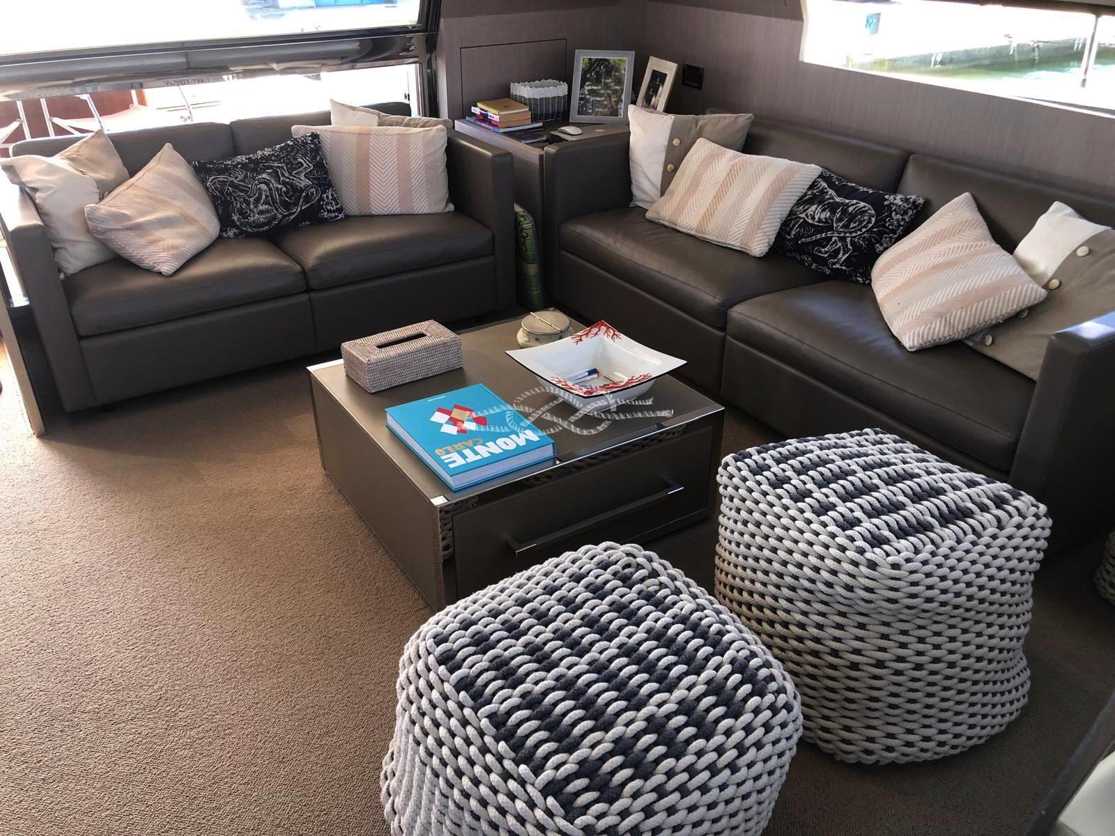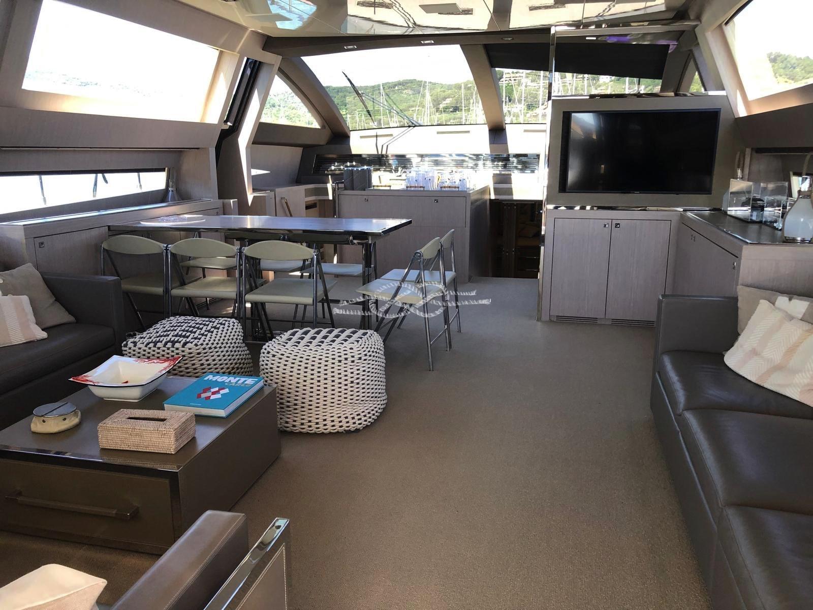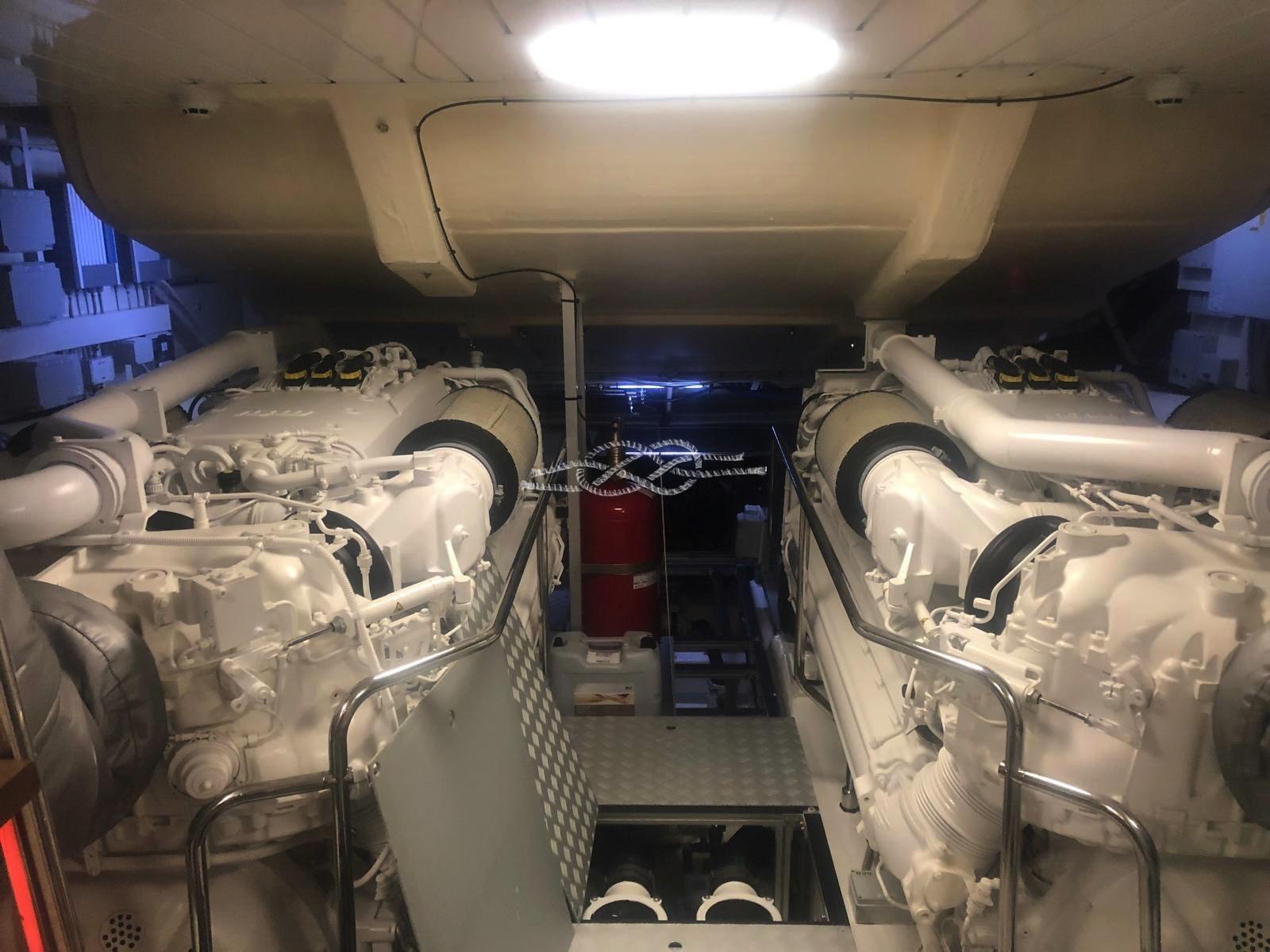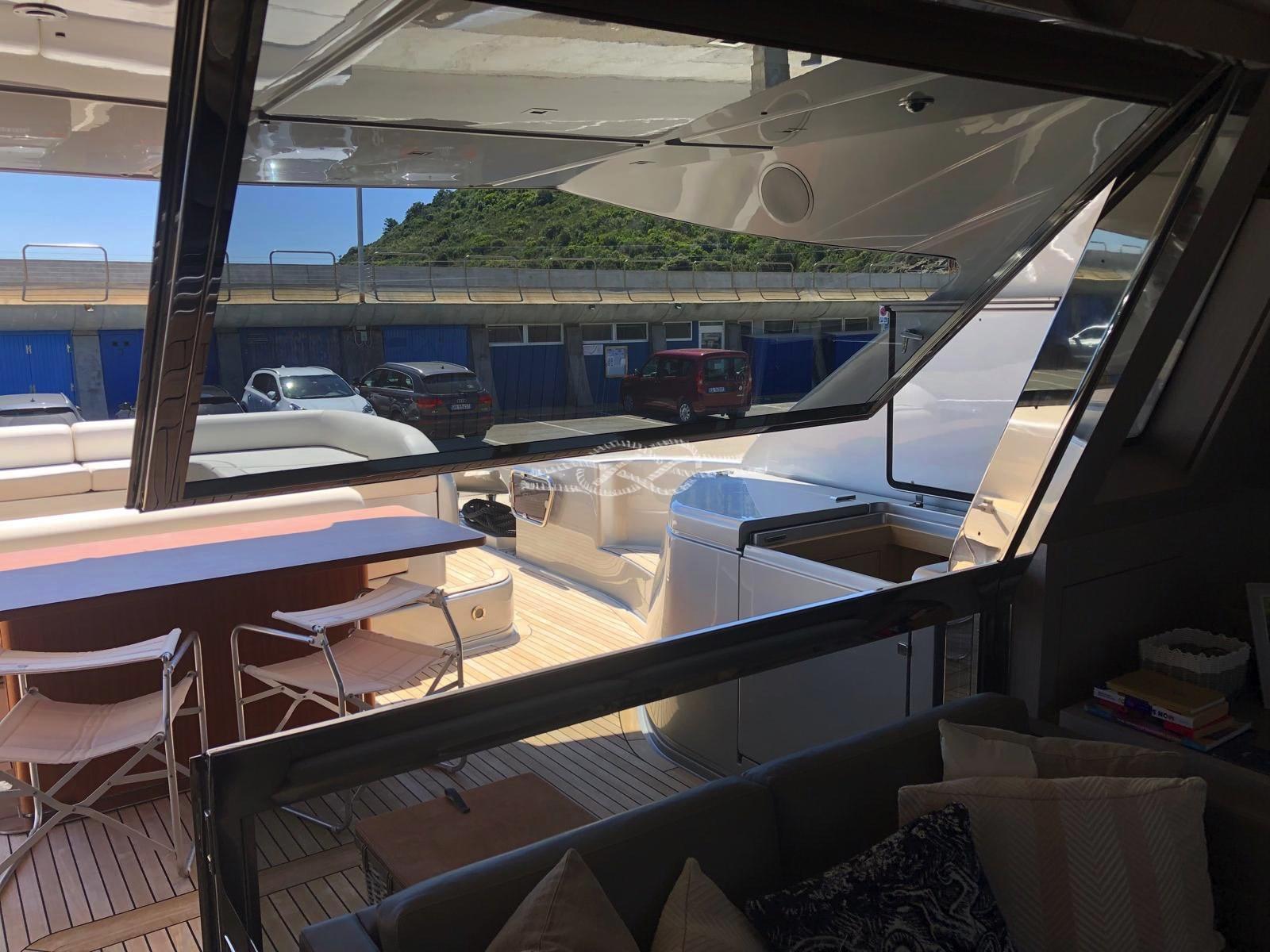 Deux stabilisateurs Seakeeper 9 - Propulseurs hydrauliques d’étrave et de poupe ABTrac - Passerelle électro-hydraulique rétractable - Double ancre - Élévateur d’annexe, plate-forme arrière - Garage d’annexe pour annexe et jet-skis - Annexe à jet Williams 385 - Antenne TV satellite - TV LCD - stéréo - climatisation Condaria chaud/froid - 2 x 28 kW Générateurs Kohler - troisième poste de commande à l’arrière - Plaque à induction 4 brûleurs Miele - Four Miele - réfrigérateur - congélateur - Lave-vaisselle Bosh - machine à glaçons - réfrigérateur extérieur - bar dans le cockpit avec évier et grill - machine à laver sèche-linge - dessalinisateur Idromar.