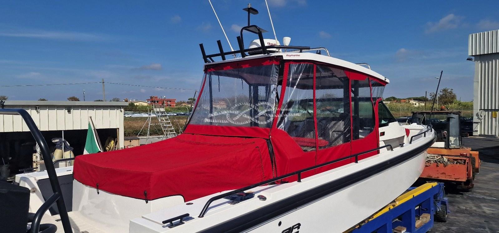 Sellerie complète (silvertex), Coussins arrieres, Coussin avant, sellerie de cockpit, Tauds de fermeture T-Top (con aperture), Taud de console, Taud de siège, Taud de soleil (estensione prua e poppa), Moustiquaires.