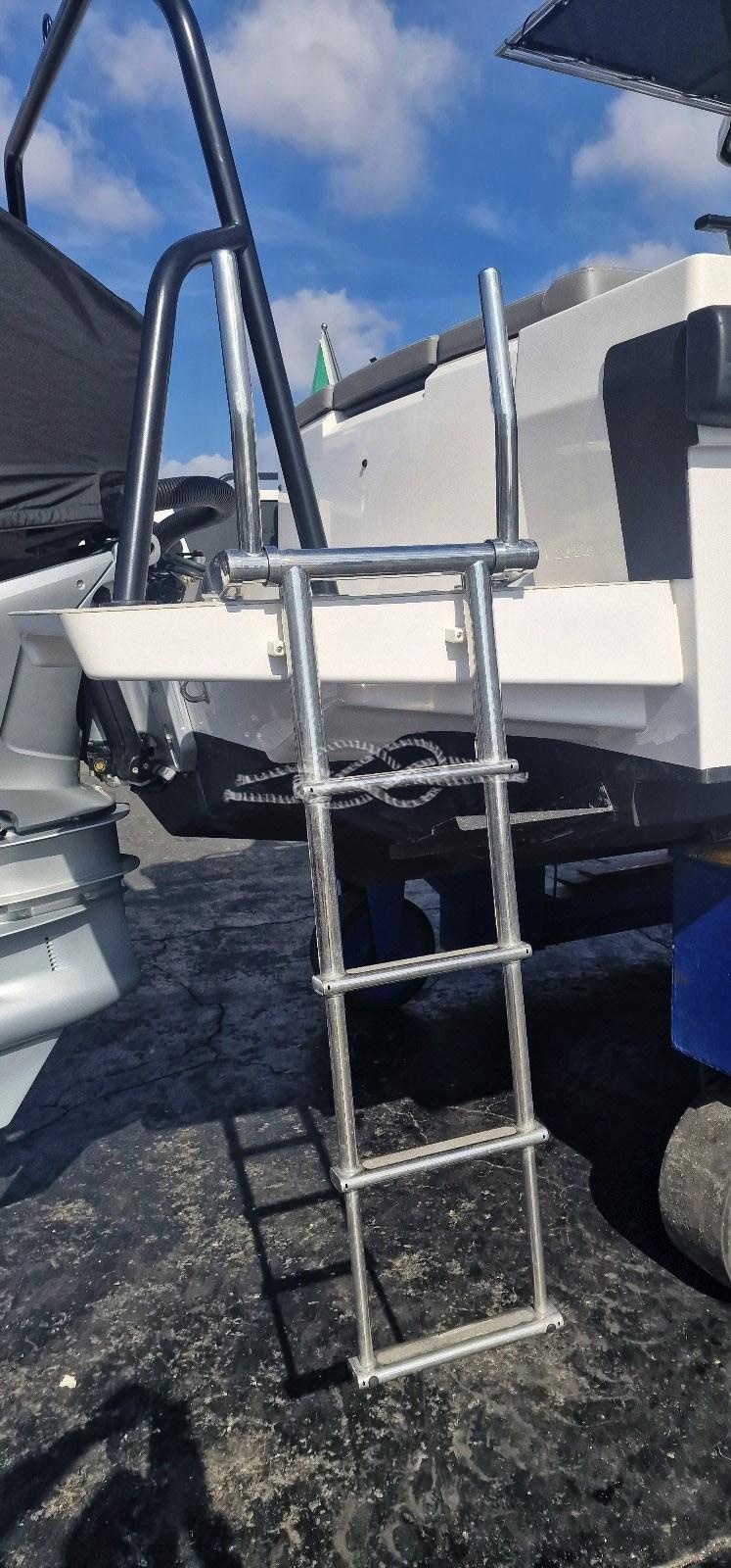 Alarme moteur, Alarme de pompe de cale, Ancre (Acciaio ultramarine 12 Kg - 50 metri catena zincata), Eau sous pression, 5 Batteries, Douche de cockpit, Propulseur d'étrave (Side power con batteria dedicata), Flaps hydrauliques, Éclairage de courtoisie, Plateforme arrière, Pompe de cale automatique, Pompe de cale manuelle, Prise de quai, Onduleur (30 ampere ripartitore di carica), Rollbar, Guindeau électrique, Echelle de bain (Nautinox con aste di sollevamento), table de cockpit, T-Top.