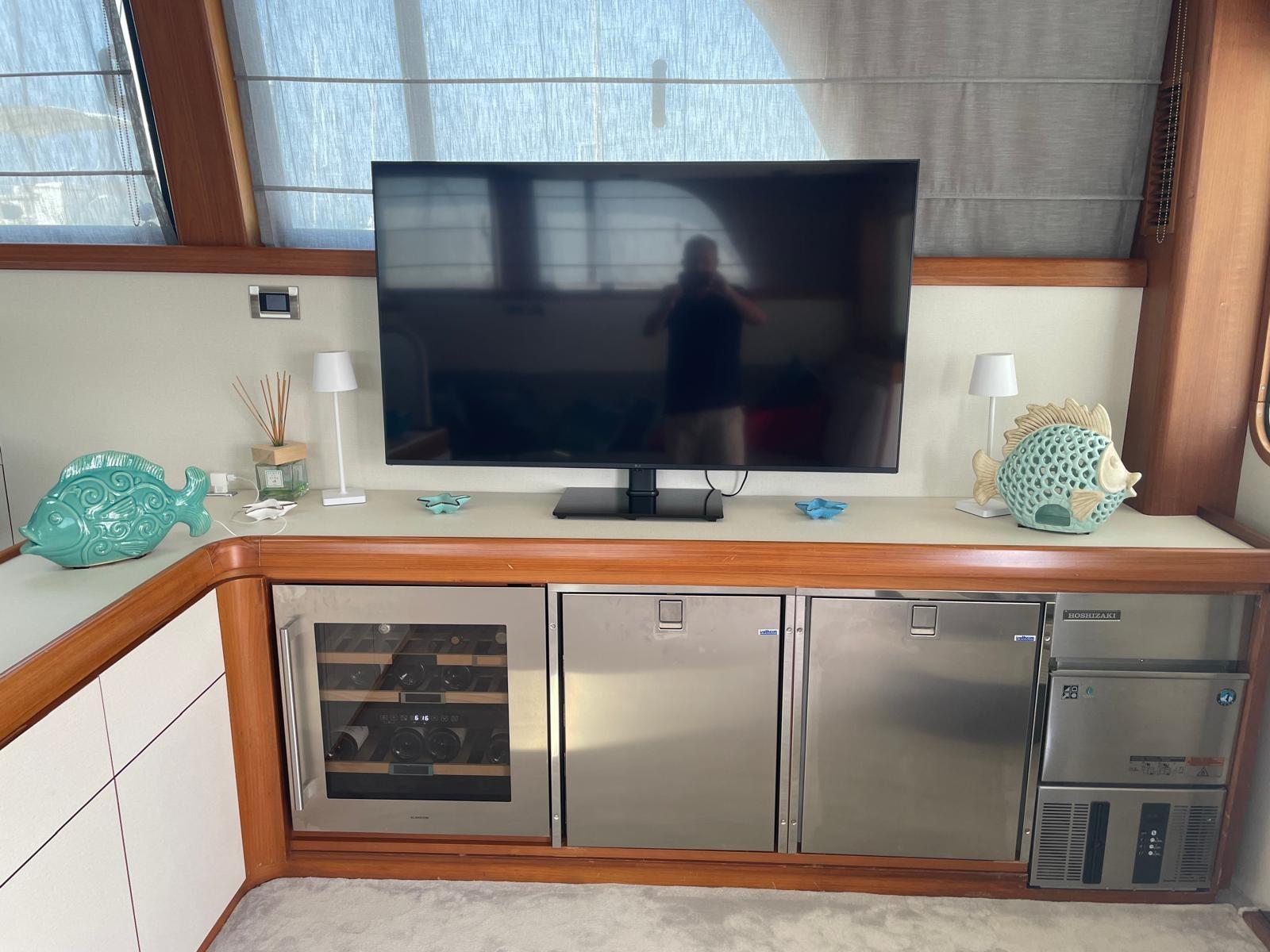 Climatisation Dometic - Groupes électrogènes Whisper Power 15,5 et 24 kW - propulseur d’étrave électrique - Internet satellite Starlink - annexe en aluminium avec hors-bord Yamaha 40/60 cv - bossoir rétractable - domotique Whisper Power - dessalinisateur Idromar - cave à vin - machine à glaçons - réfrigérateur double dans le salon - réfrigérateur à mouches - plaque de cuisson électrique Miele - four Miele - réfrigérateur/congélateur - lave-vaisselle Miele - antenne TV - TV LCD - machine à laver.