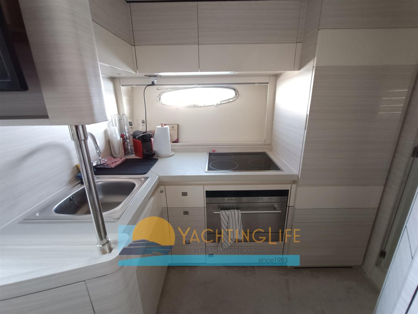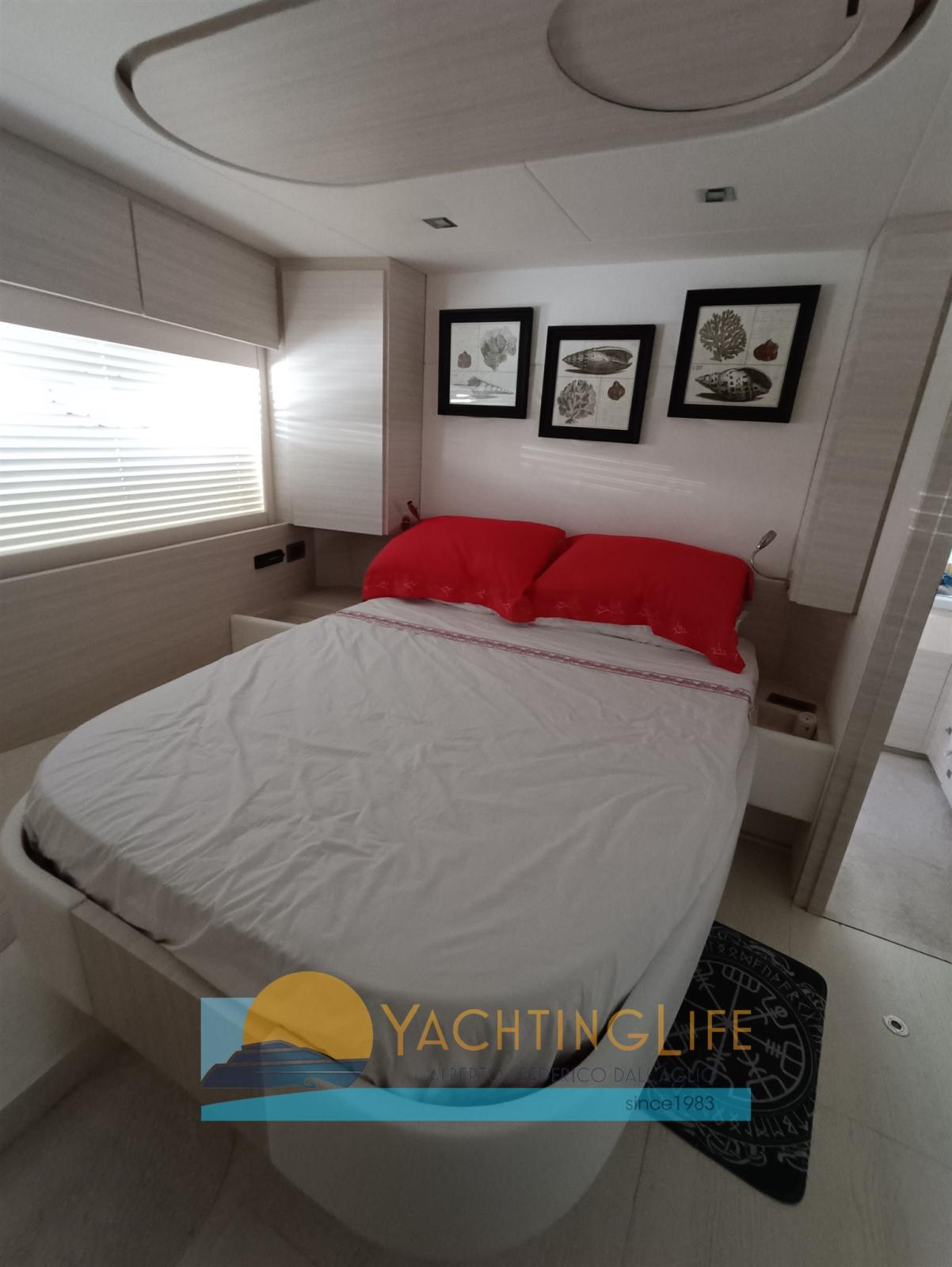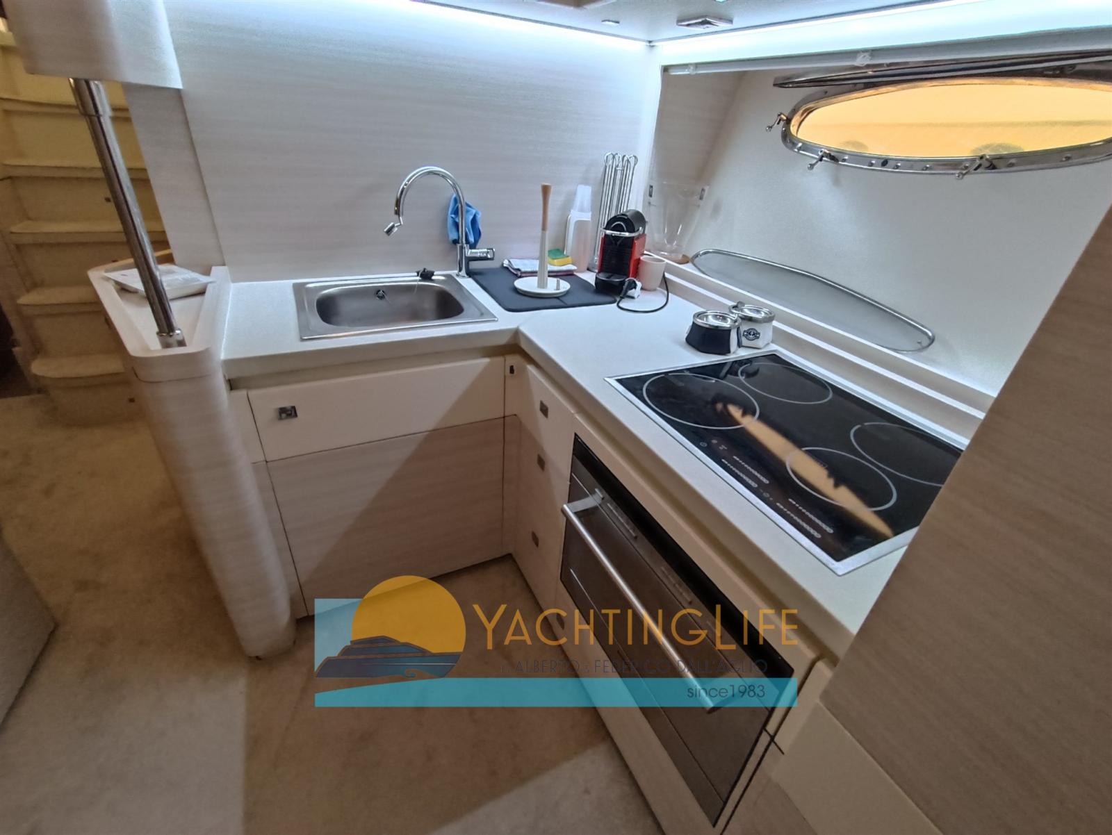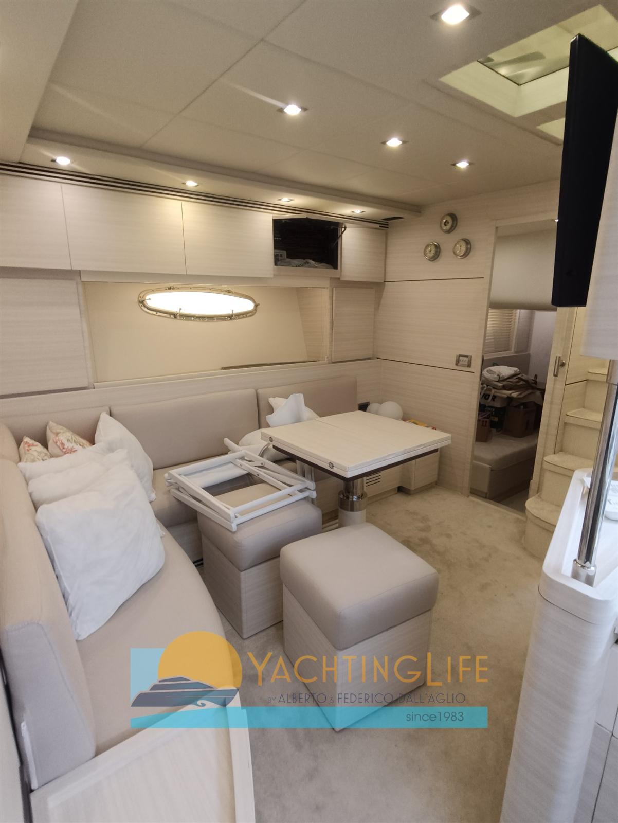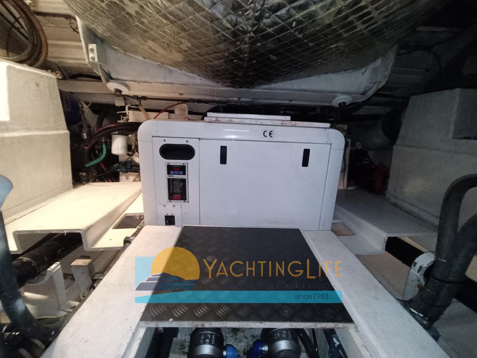 Alarme moteur, Alarme de pompe de cale, Eau sous pression, Douche de cockpit, Flaps hydrauliques, Hard top, Extincteur(s) fixe(s), Indicateurs de flaps, Éclairage de courtoisie, Spots sous-marins, Passerelle (idraulica), Plateforme arrière, Pompe de cale automatique, Cockpit en teck, Prise de quai, Guindeau électrique, Echelle de bain, table de cockpit, Annexe (e motore), Corne, Winch électrique arrière.