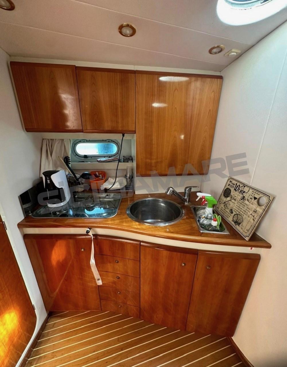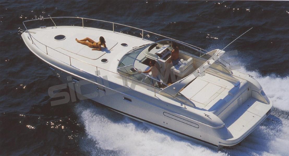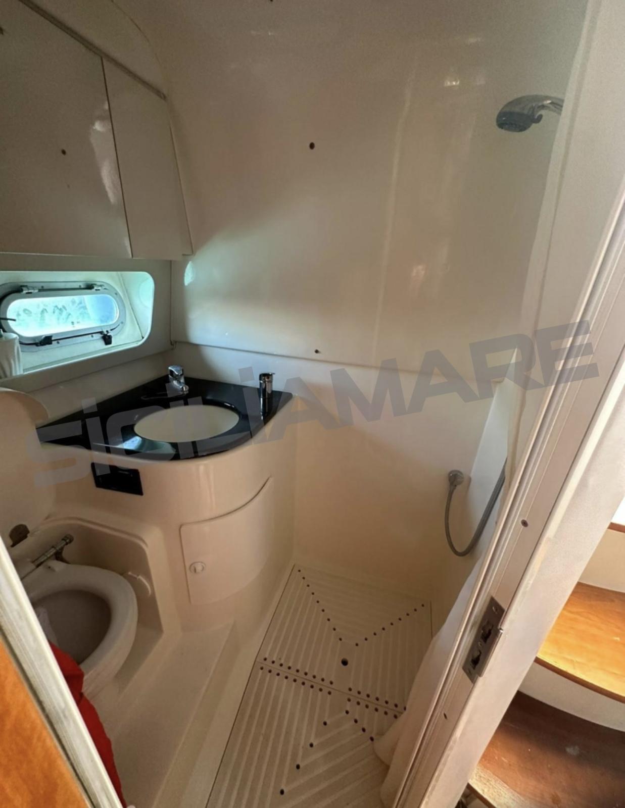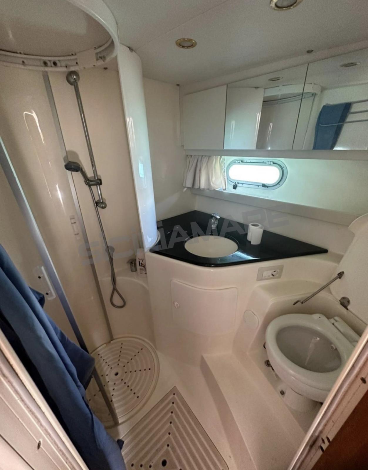 Alarme moteur, Eau sous pression, Câble d’alimentation à quai, Douche de cockpit, Phare de poursuite, Flaps hydrauliques, Éclairage de courtoisie, Spots sous-marins, Passerelle (Hydraulic), Plateforme arrière, Pompe de cale automatique, Pompe de cale manuelle, Cockpit en teck, Prise de quai, Onduleur, Rollbar, Guindeau électrique, Echelle de bain, table de cockpit (Teak), Table pliante de salon.