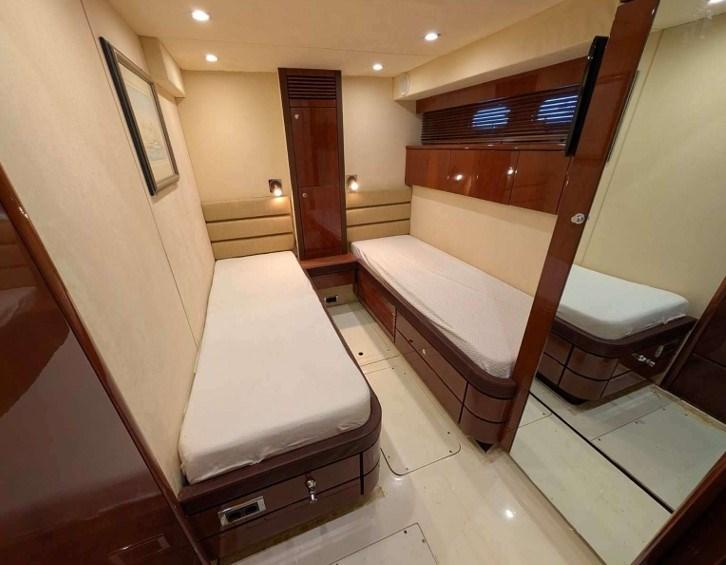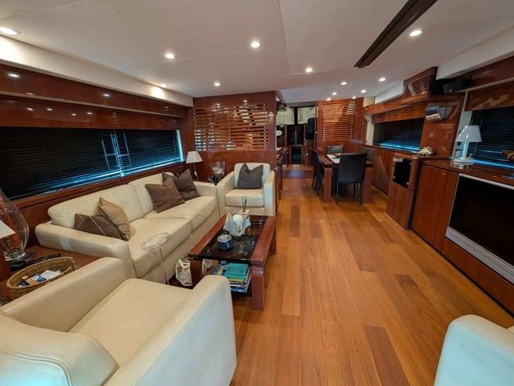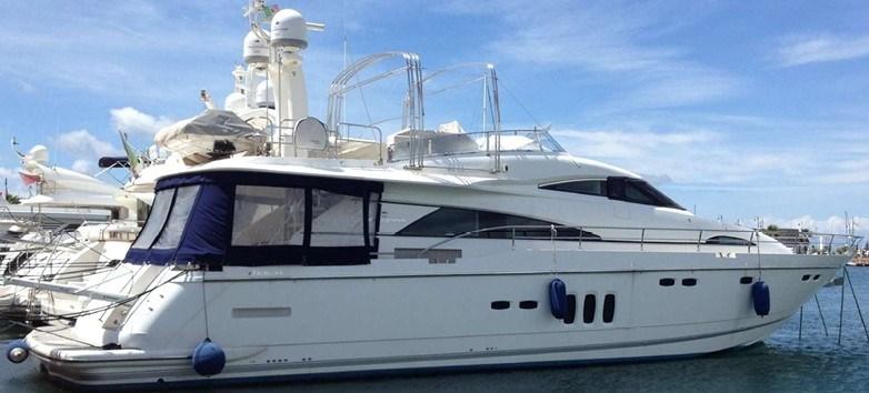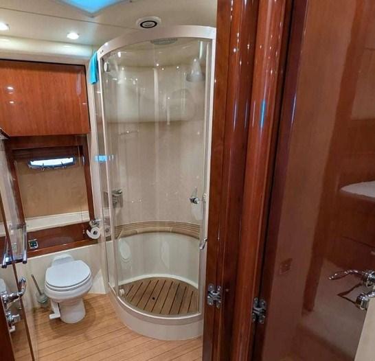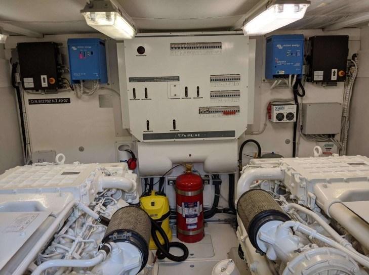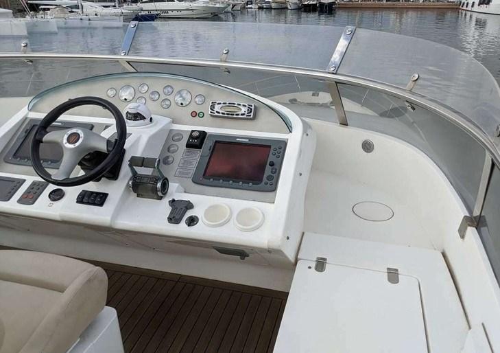 Alarme moteur, Alarme de pompe de cale, Eau sous pression, Douche de cockpit, Double barre à roue, Bossoirs (Besenzoni sul fly), Spots sous-marins, Passerelle (idraulica a scomparsa), Plateforme arrière, Pompe de cale automatique, Pompe de cale manuelle, Cockpit en teck, Onduleur, Guindeau électrique, Echelle de bain, Selles pour Annexe (sul fly), Annexe.