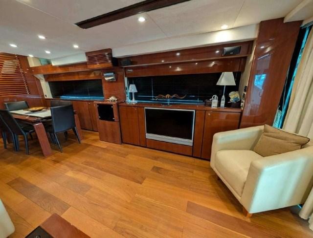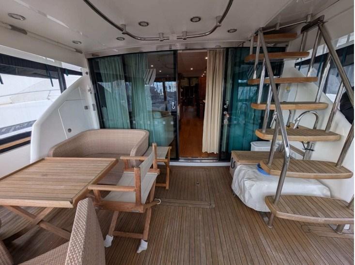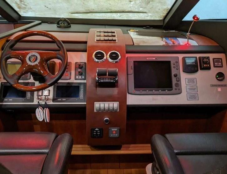 PONT MOUCHER EN TECK. HANGAR ARRIÈRE POUR CANOT DÉRIVEUR. PARQUET EN TECK. SIÈGES BESENZONI RÉGLAGE ÉLECTRIQUE.