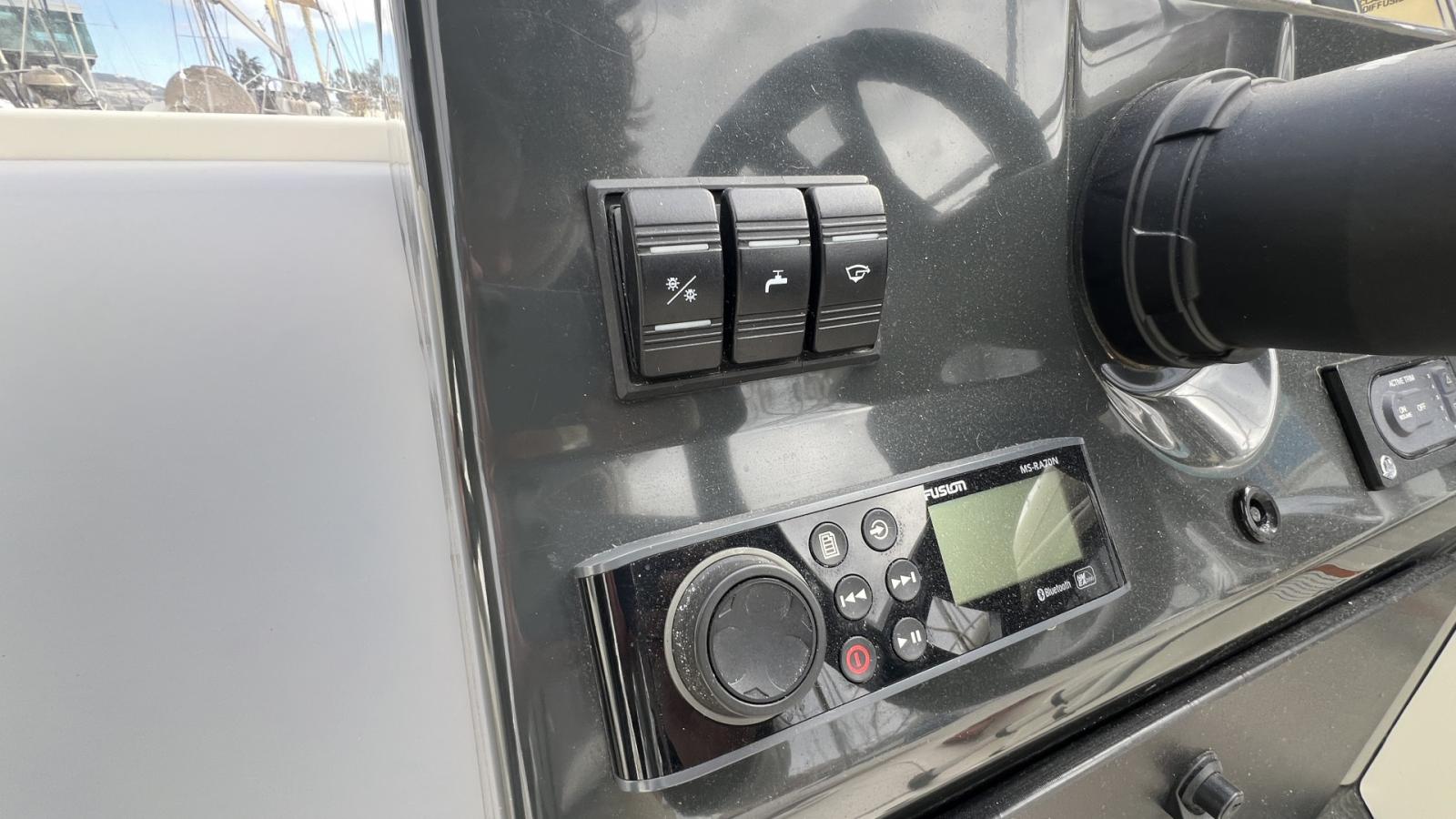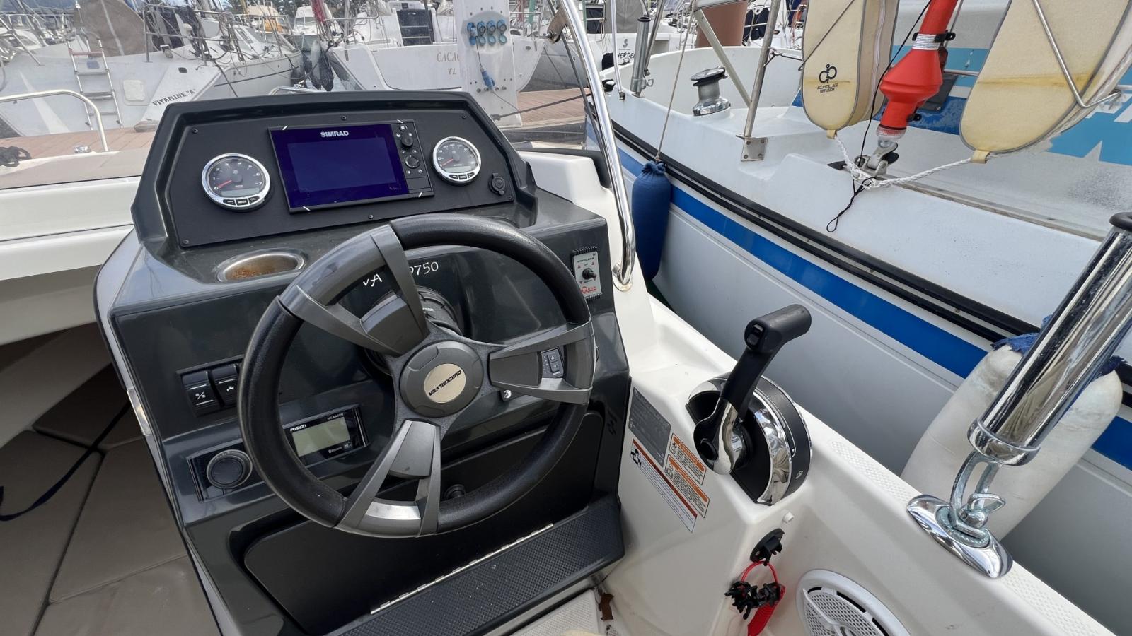 Table cockpit, Haut-Parleur SONY (2024), Guindeau électrique, GPS / Sondeur / Traceur SIMRAD, Radio CD FUSION, Batterie moteur 2024, Loch-speedomètre.