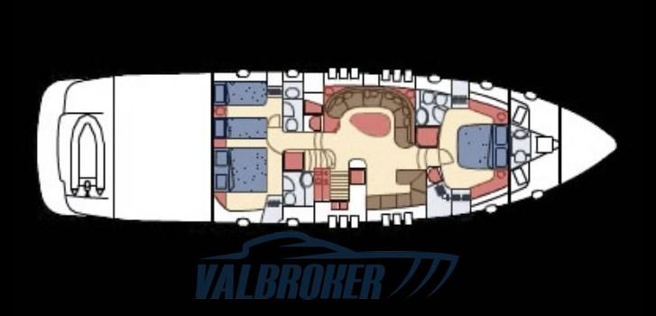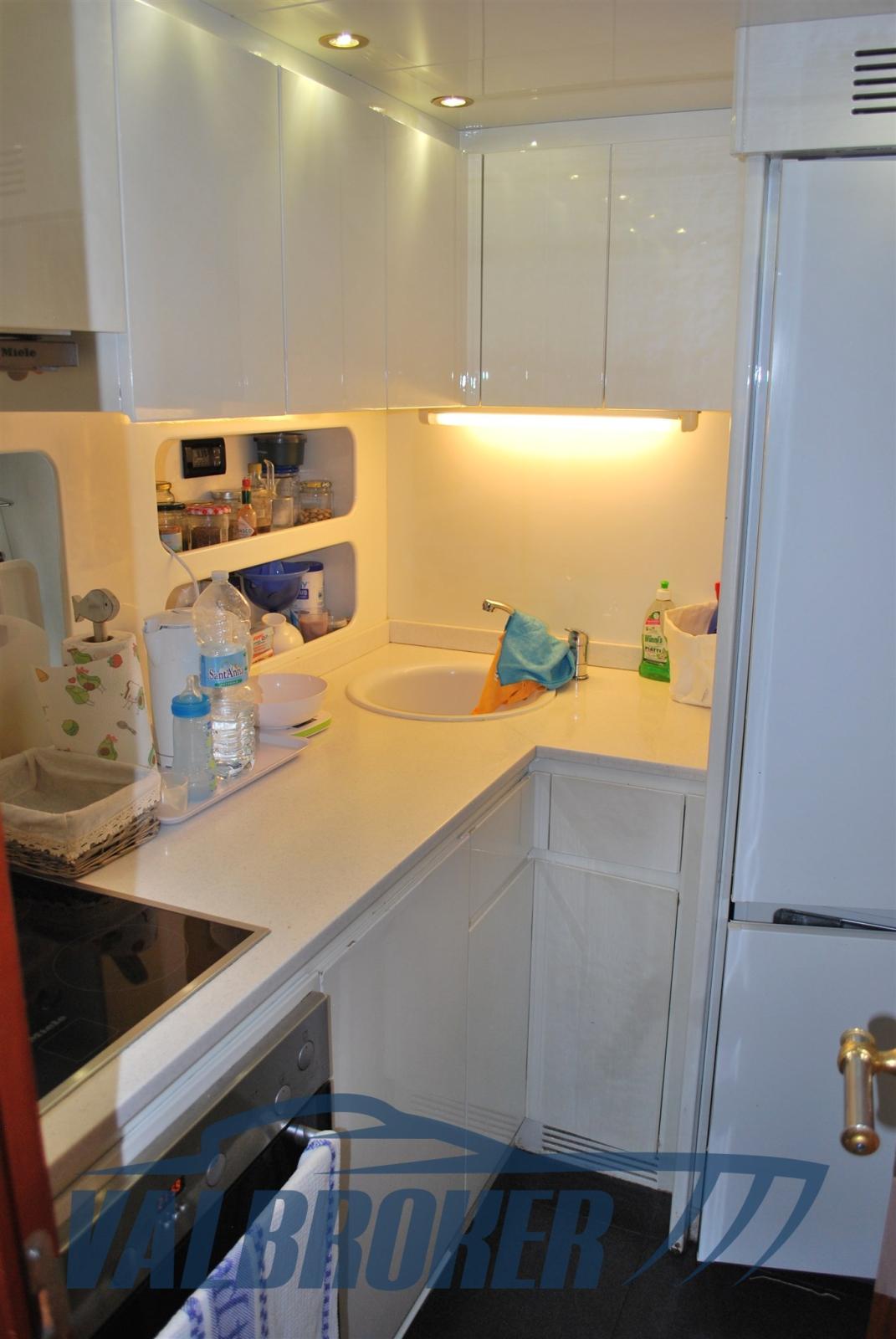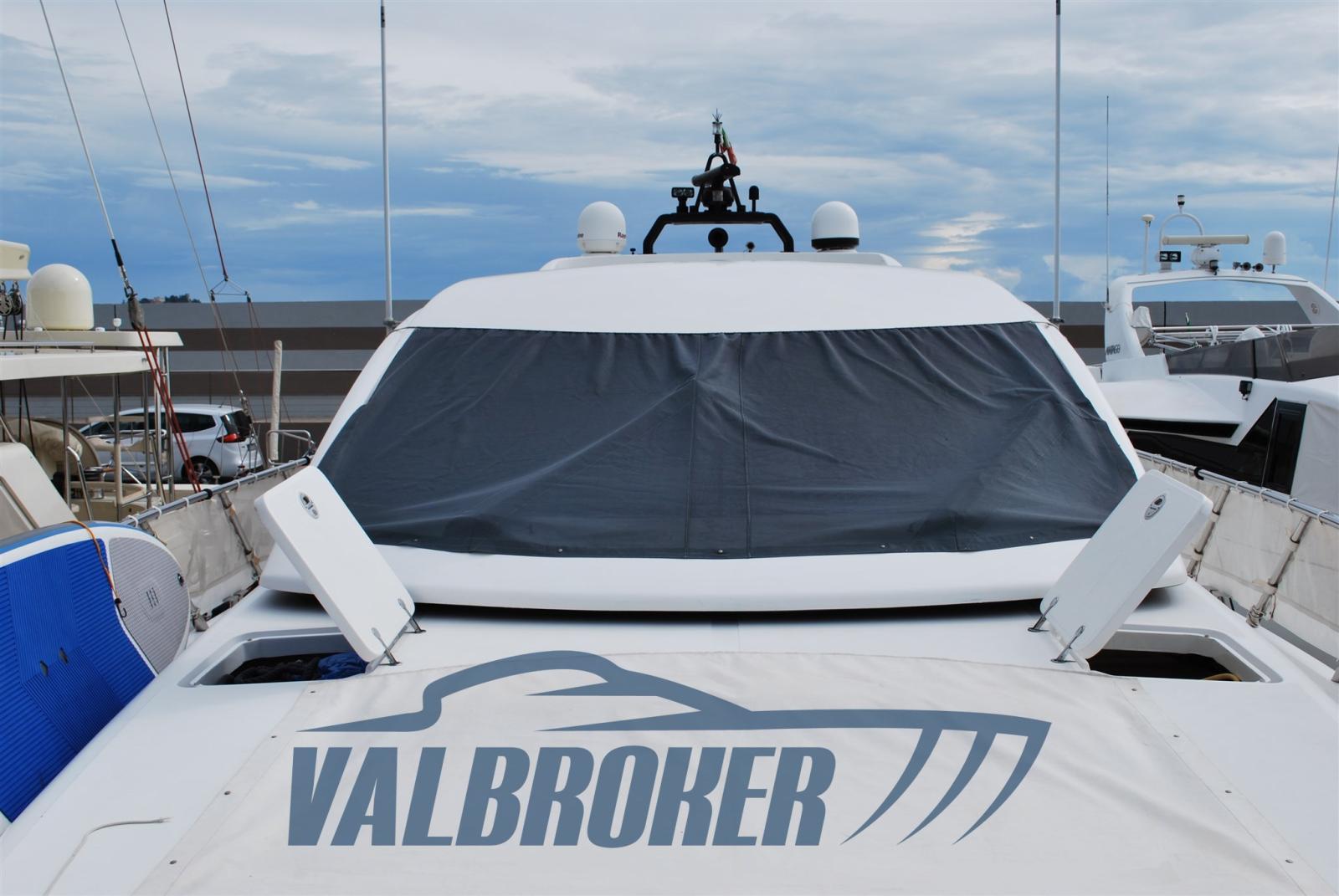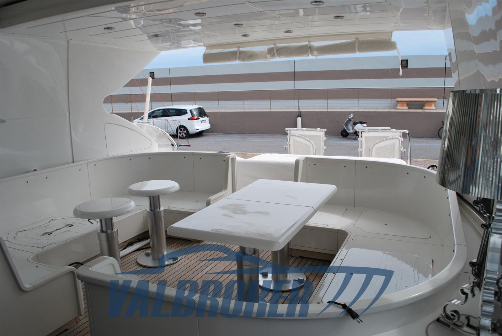 Eau sous pression, Propulseur d'étrave (Vetus), Phare de poursuite (Sanshin HR1012), Garage à annexe (ampio, portellone idraulico), Hard top (con apertura elettrica soffitto in pelle), Passerelle (idraulica, teak), Plateforme arrière (teak), Cockpit en teck, Onduleur, Guindeau électrique (Quick, comando a distanza), table de cockpit.