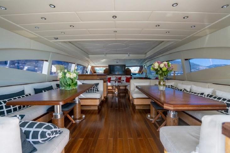 La généreuse cabine principale avec un espace suffisant dispose d’une salle de bain et d’un sauna, tandis que les autres cabines sont décorées avec goût et bien disposées pour offrir un maximum d’espace et d’espace de rangement.