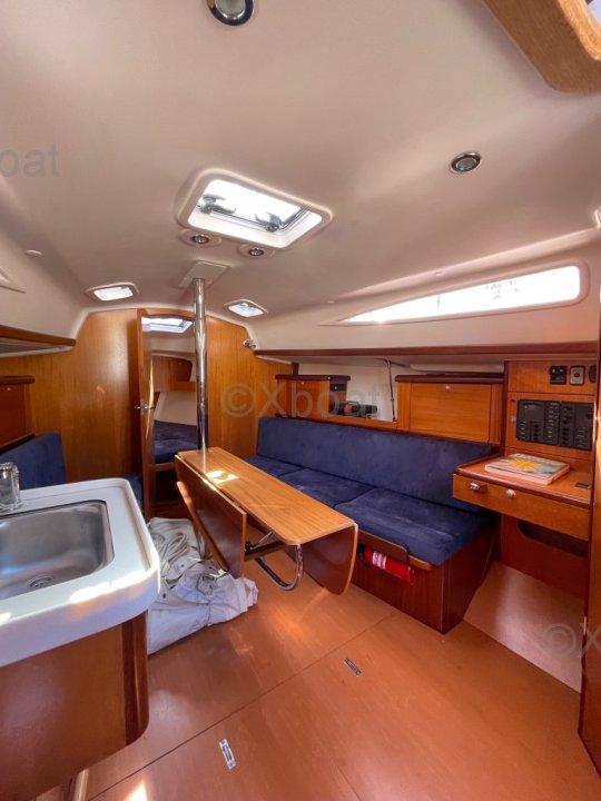 Intérieur : Lumineux et fonctionnel, beaucoup de rangements. Points forts : construction solide, Bon compromis habitabilité / maniabilité. Facile pour équipage réduit, plan de voilure simple et efficace pour croisière familiale.
