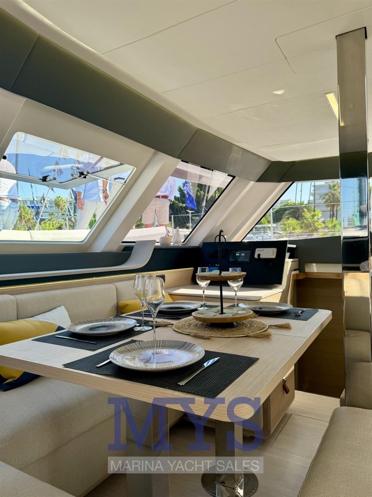 ✔ Un design qui se démarque vraiment, tendu, moderne, lignes reconnaissables, disposition intelligente et fonctionnelle, élégance du béton, pas ostentatoire. Un catamaran qui se démarque partout, sans besoin d’excès.