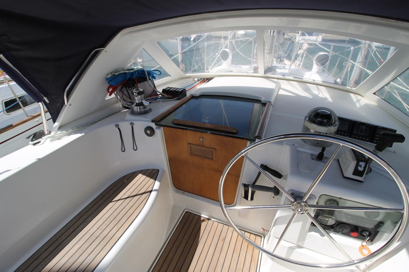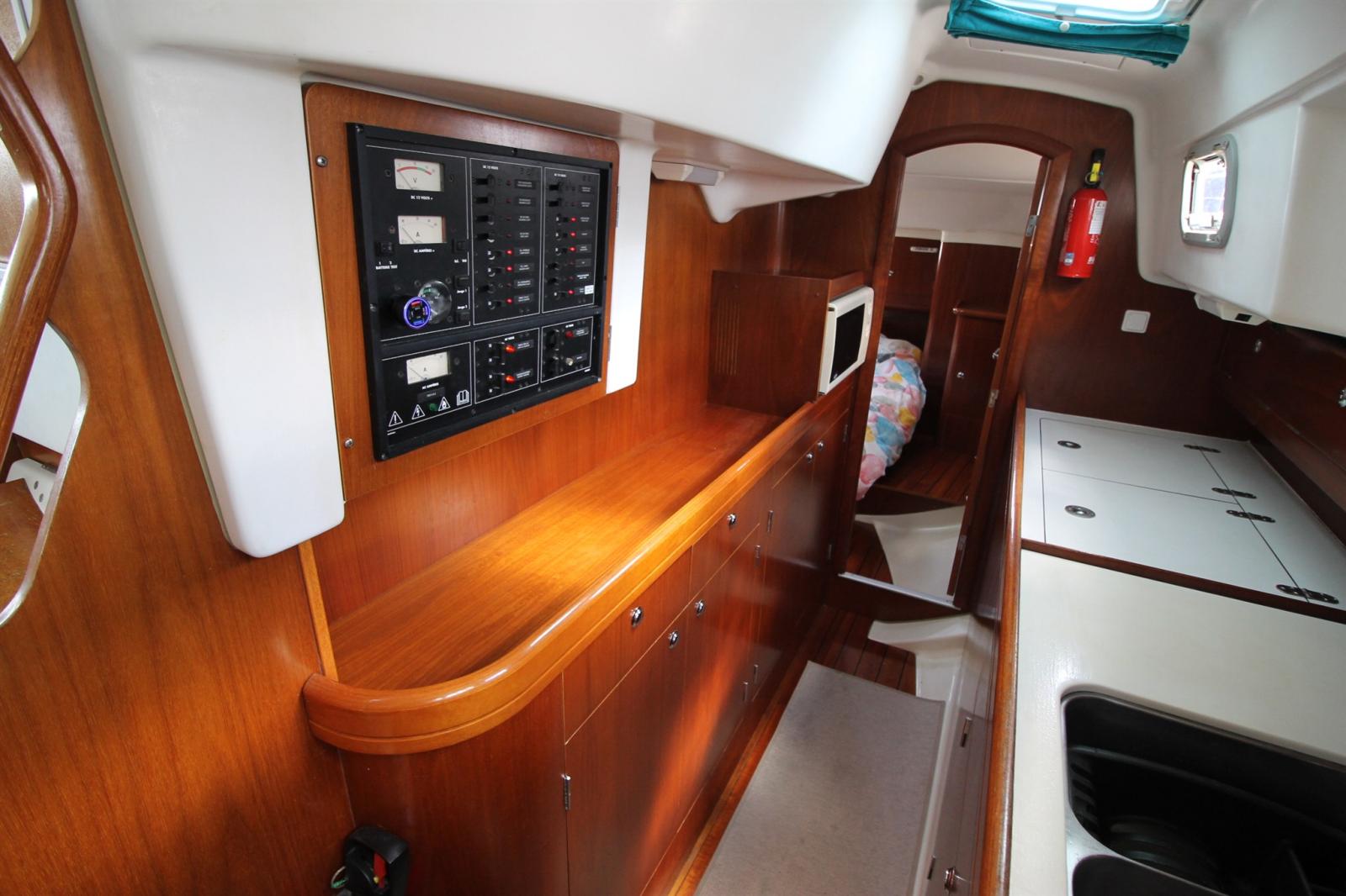 Ancre (Delta Galva 16kg (Mai 2025) + 50m de chaine en 10), 2 Winch selftailing, Eau sous pression, 4 Batteries (x110Ah(avril 2025)), Chargeur de batterie (20A Dolphin), Câble d’alimentation à quai, Douche de cockpit, Bossoirs pour annexe (sur portique inox), Panneau solaire (bifacial 515W (2025) + MPPT VICTRON bluetooth), Passerelle, Pompe de cale manuelle, Cockpit en teck, Guindeau électrique (Leroy Somer 1200W), Echelle de bain, Chaise support HB, table de cockpit (escamotable).