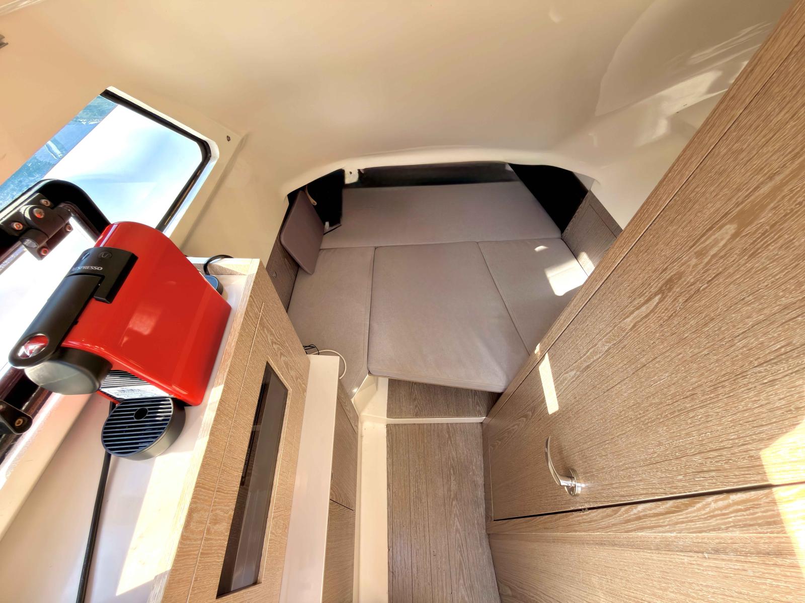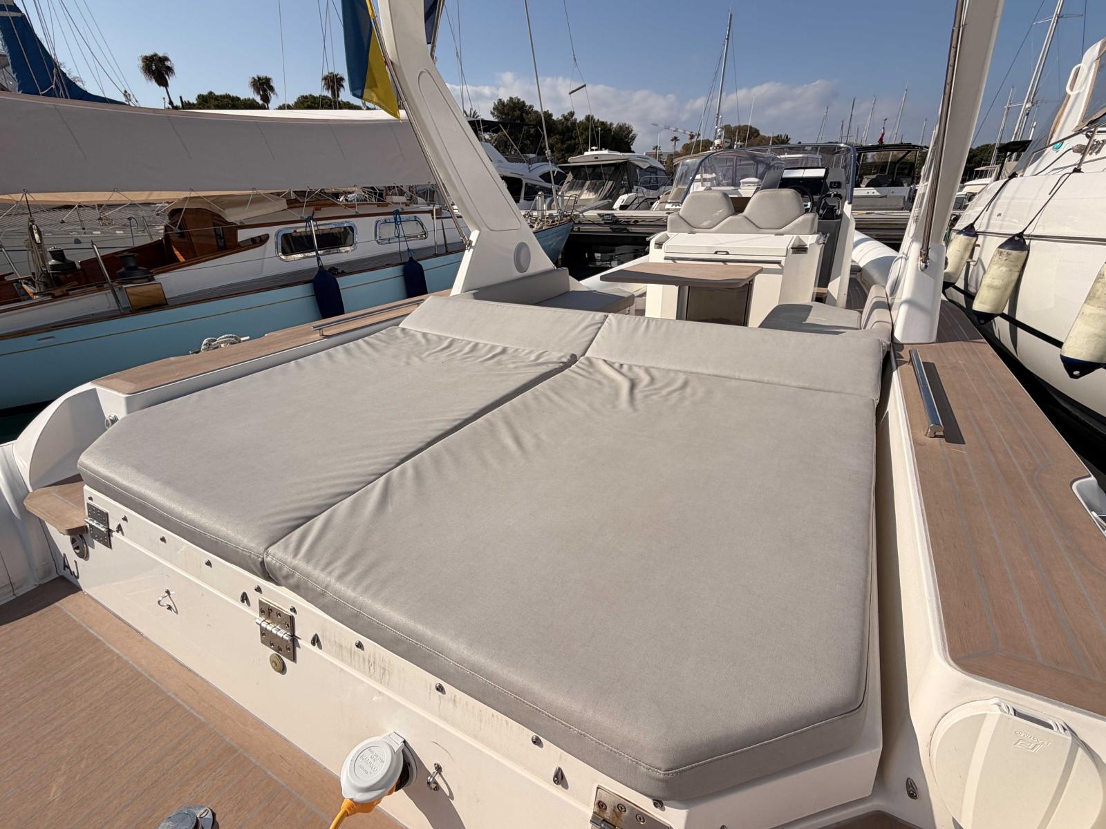 Son plan de pont spacieux permet d’accueillir confortablement jusqu’à 12 personnes. Les bains de soleil, le cockpit convivial et les espaces bien pensés en font un bateau idéal pour des sorties à la journée, en usage privé comme en location.