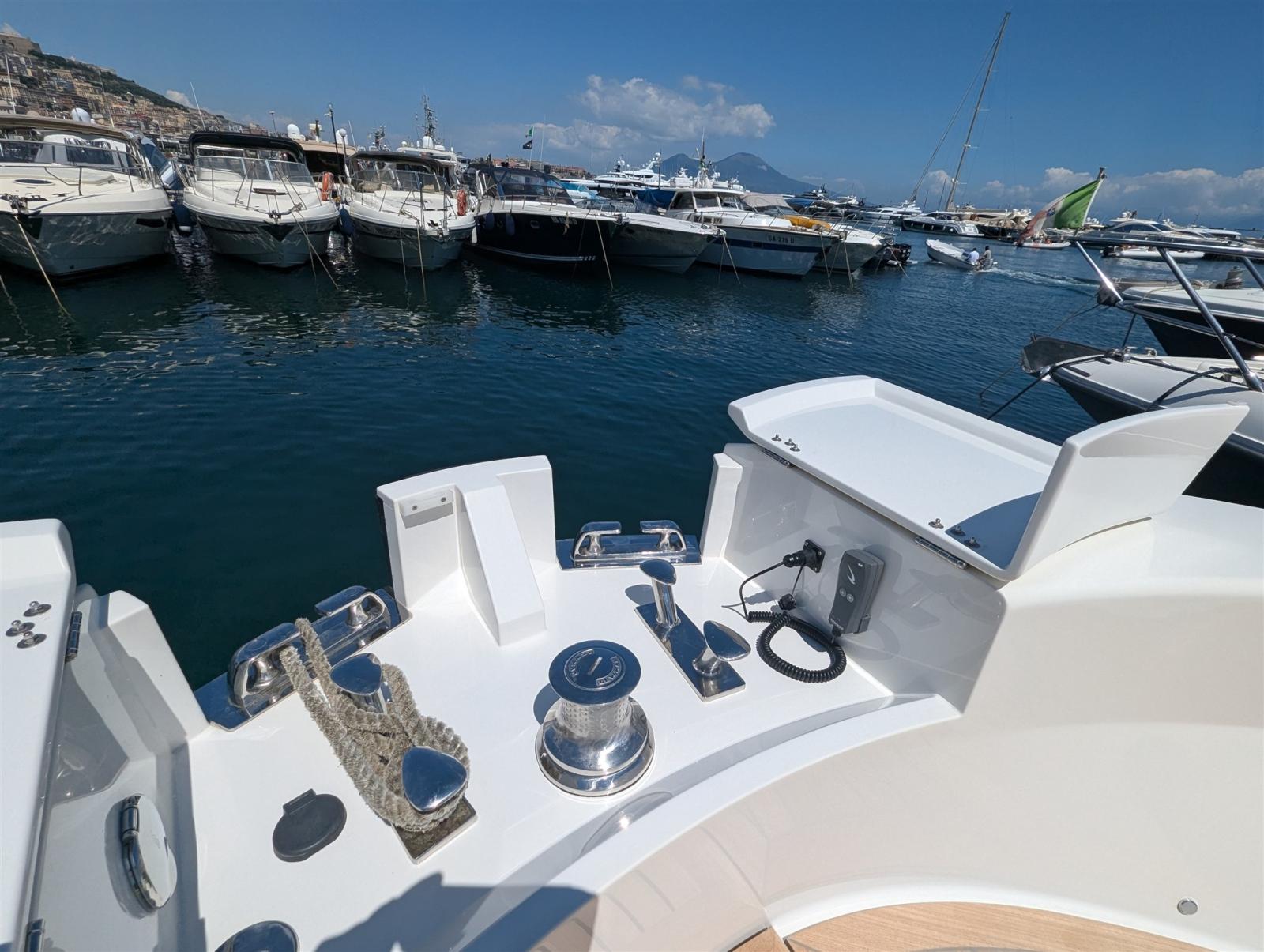 Alarme gaz, 2 Alarme moteur, Alarme de pompe de cale, Ancre (15 kg SS Bruce type with 75m galvanized chain 8mm), Ouverture du compartiment moteur électrique, Eau sous pression, Trim hydraulique (Volvo Penta electric Trim Tabs), 4 Batteries (2xAGM 100Ah (engines) + 2xGEL 130Ah (service) + 1xAGM 100 Ah (generator)), Système de vidange, Passavant en teck, Chargeur de batterie (50 Ah), Douche de cockpit, Phares fixes arrière (Front and front docking lights), Phare de poursuite, Flaps électriques (Interceptors), Hard top (Full carbon fiber wiht 2 ladders to sundeck), Extincteur(s) fixe(s), Indicateurs de flaps, Lavabo dans le cockpit, Éclairage de courtoisie, Spots sous-marins, Passerelle (Idraulica transformer), Plateforme arrière (idraulica 400 kg), 4 Pompe de cale automatique, Porte latérale (sliding), 2 Porte latérale, Cockpit en teck, Prise de quai (16 Ah with 15m cable), Onduleur, Guindeau électrique (1.000 W), Echelle de bain, Stabilisateurs (seakeeper 3), table de cockpit (Electric telescopic), Table pliante de salon (Electric telescopic), Corne, 2 Winch électrique arrière, Winch électrique avant.