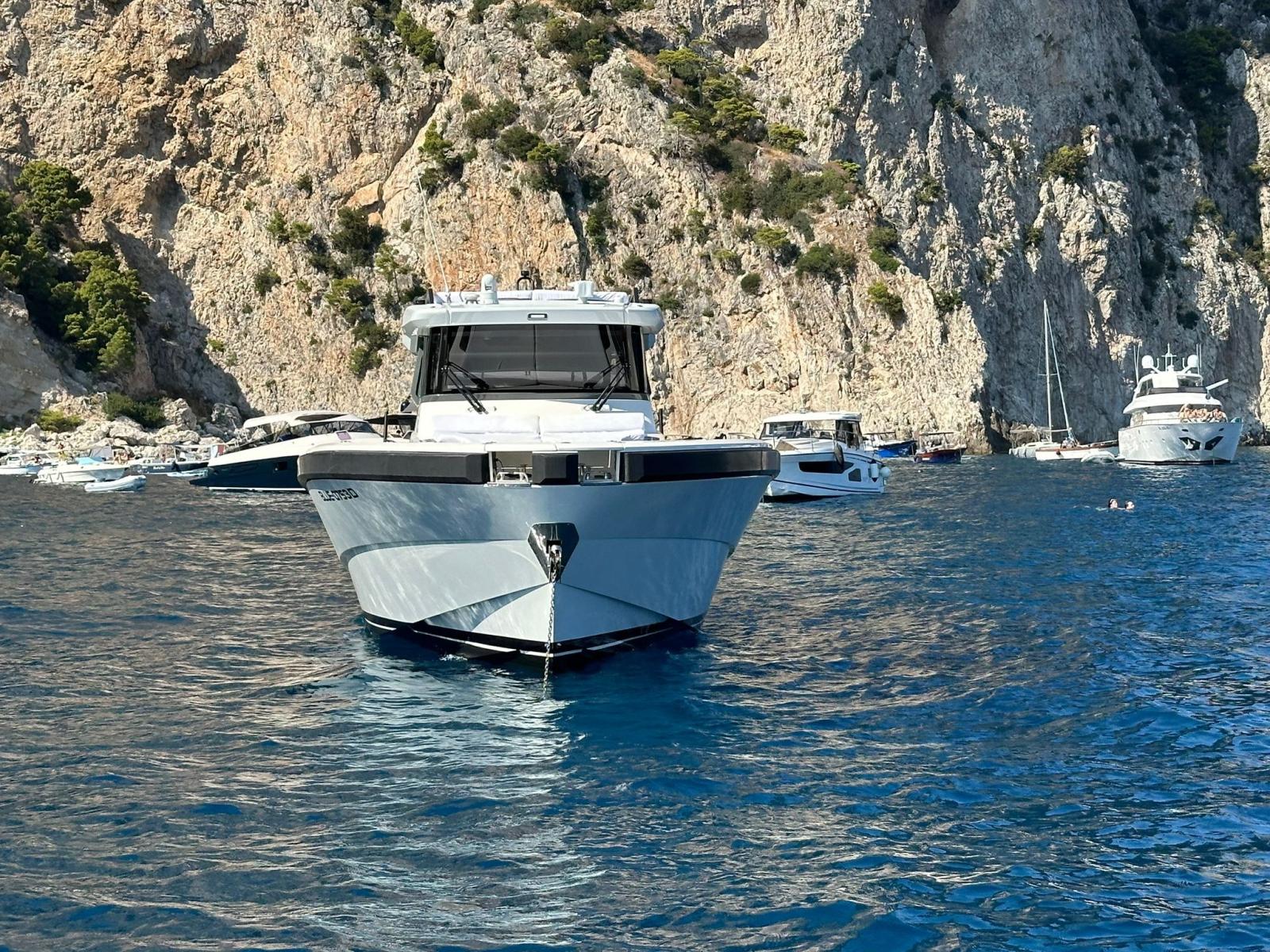 Pas une promenade, pas un open, pas un day-cruiser ou un chase-boat. Le Bluegame 42 est tout cela à la fois. Il n’est plus nécessaire de faire des compromis entre puissance et confort maximal à bord. Un design avant-gardiste pour un bateau à moteur élégant qui offre des sensations uniques en mer. Le BG 42 est équipé d’un grand cockpit, d’un walk-around protégé par des bords hauts pour des opérations en toute sécurité en pleine mer et une large visibilité lors des manœuvres, grâce au poste de commande central et à la vitre arrière. Grâce à une optimisation intelligente de la lumière et de l’espace, l’habitabilité du pont inférieur est supérieure à celle d’un bateau de même longueur. La cabine principale dispose d’un lit double king-size et la salle à manger à l’avant peut être convertie en lit double pour accueillir jusqu’à six personnes. Ce BG 42 est dans un état comme neuf. A voir absolument. Contactez-nous pour tous les détails.