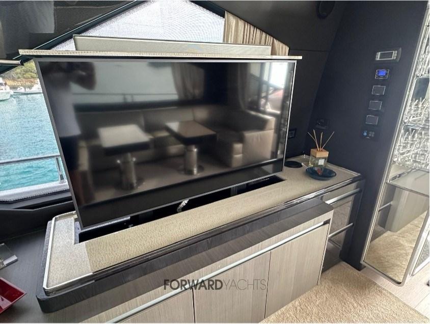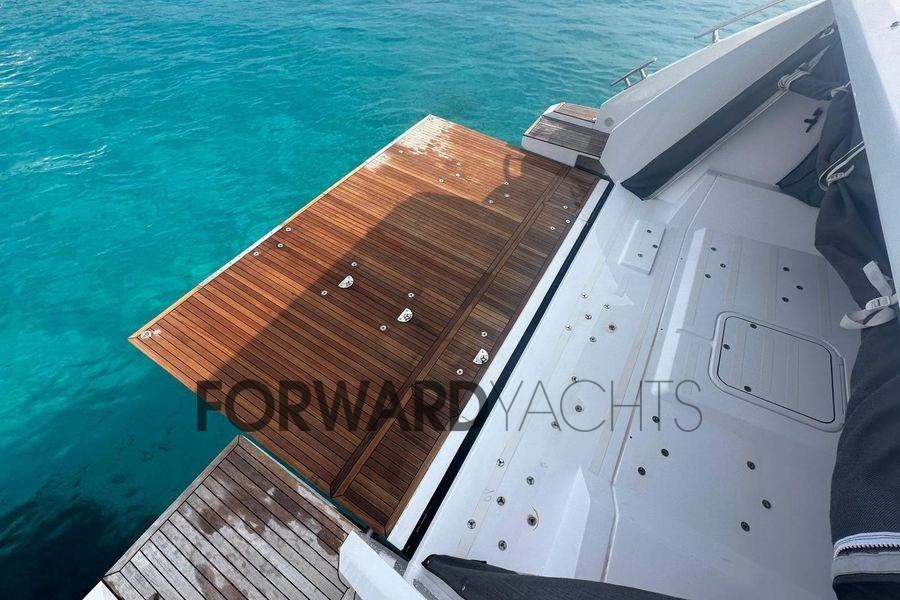 Seakeeper NG16 - 2 générateurs (Kohler 19 kVA et Mase 6,5 kVA) - watermaker HP 360 l/h - propulseur avant - plateforme de bain hydraulique - maître de câble Glendening - feux sous-marins (4) - électronique complète Raymarine (4 x 16") - AIS - radar Raymarine - pilote automatique - VHF - sondeur de profondeur - troisième station de manœuvre avec joystick dans le cockpit - teck dans cockpit, ponts latéraux et flotte - passerelle hydraulique Opacmare - toit rigide avec toit ouvrant - proue bimini hydraulique - mouche bimini hydraulique - auvent Cockpit électrique - chaîne d’ancre de 100 m + ancre Ultra Marine 45 kg - treuil de cockpit - Starlink - système Bose Hi-Fi - salon TV avec système hi-low - TV dans 3 cabines + cabine d’équipage - Audio Fusion cockpit - 4 cabines + cabine d’équipage - 3 salles de bain - climatisation réversible - salon en cuir - plancher en bois dans le salon - coffre - machine à laver - sèche-linge - lave-vaisselle - four + micro-ondes - 4 réfrigérateurs - 1 congélateur - cave à vin.