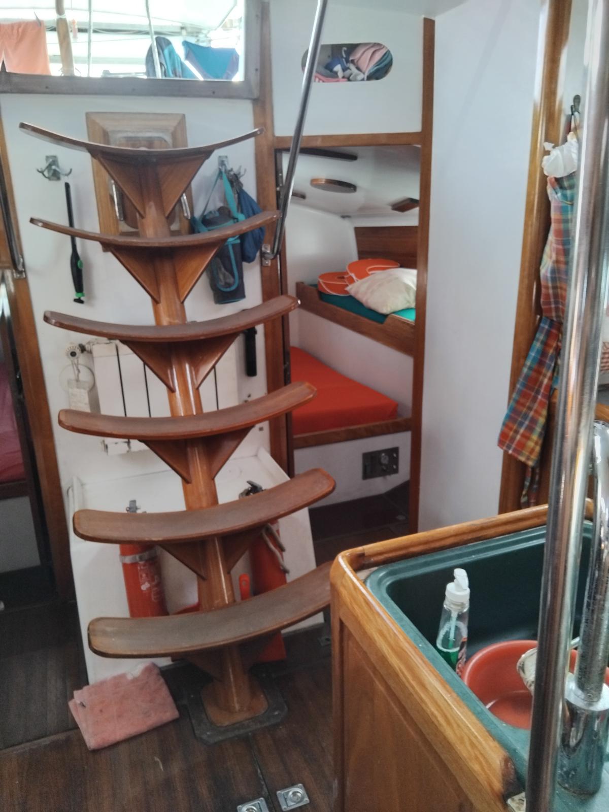 A l'intérieur, réalisé aussi de façon exemplaire, vous disposerez de 4 cabines doubles (une avec couchettes superposées) d'une vraie table à cartes, d'un carré spacieux, de salles de bain, ...