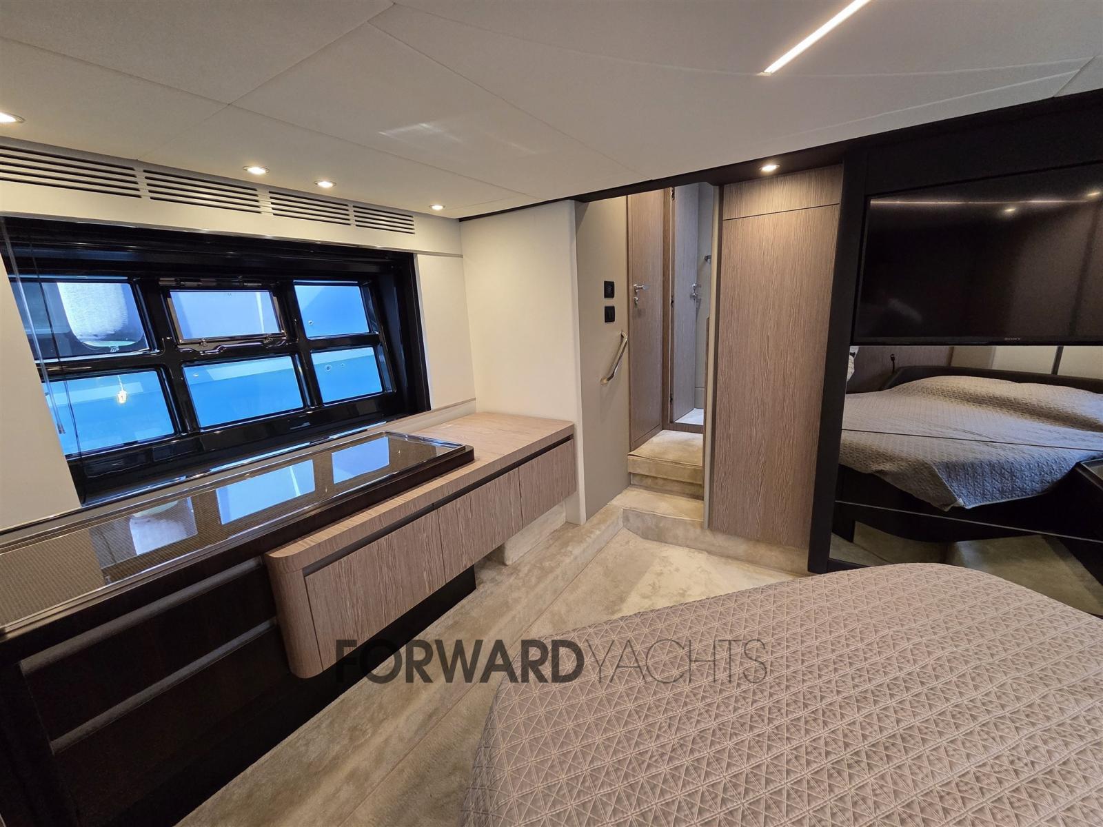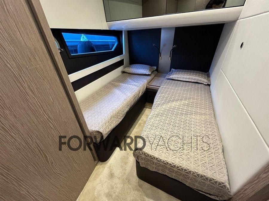 Equipé de 3 moteurs Volvo Penta de 550Hp et équipé de nombreux accessoires : stabilisateurs Seakeeper, dessalinisateur, propulseur d’étrave, hard-top, passerelle rétractable, garage annexe, cockpit et passerelles latérales en teck, lumières sous-marines, volets électriques, ravitailleur à réaction Pirelli 330 (2021), treuil de poupe, système de climatisation et bien plus encore.