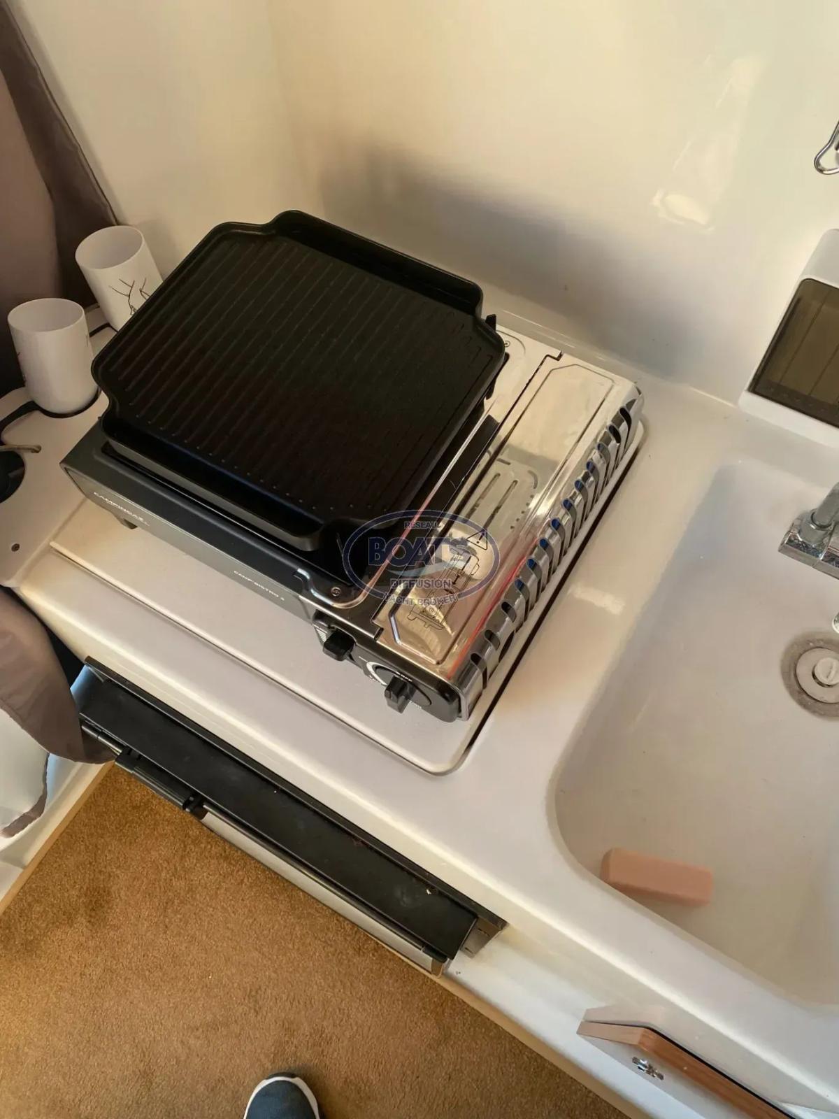 Remplacement de la jauge à carburant, du moteur de trim, de l’indicateur de trim, des pompes à carburant (haute et basse pression), de la poire d’amorçage, du préfiltre à carburant, du filtre à carburant et des bougies - Étanchéité du panneau ouvrant de cabine refaite et nettoyage du réservoir d’eau.