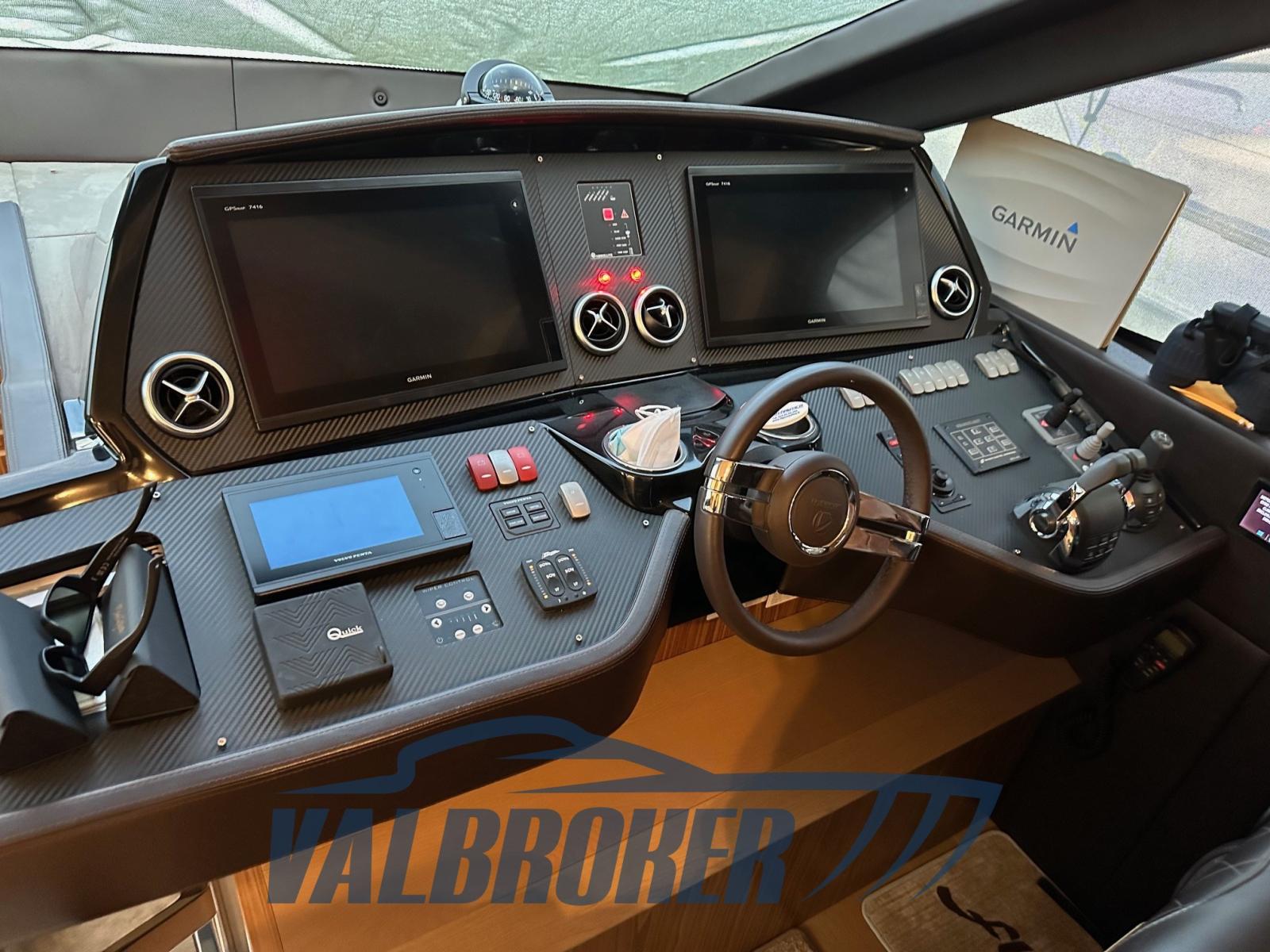 EN OPTION COMPLÈTE : stabilisateur Seakeeper 9 installé en 2019, GPS, pilote automatique, générateur, climatisation également dans la cabine d’équipage, joystick de manœuvre, propulseur d’étrave.
