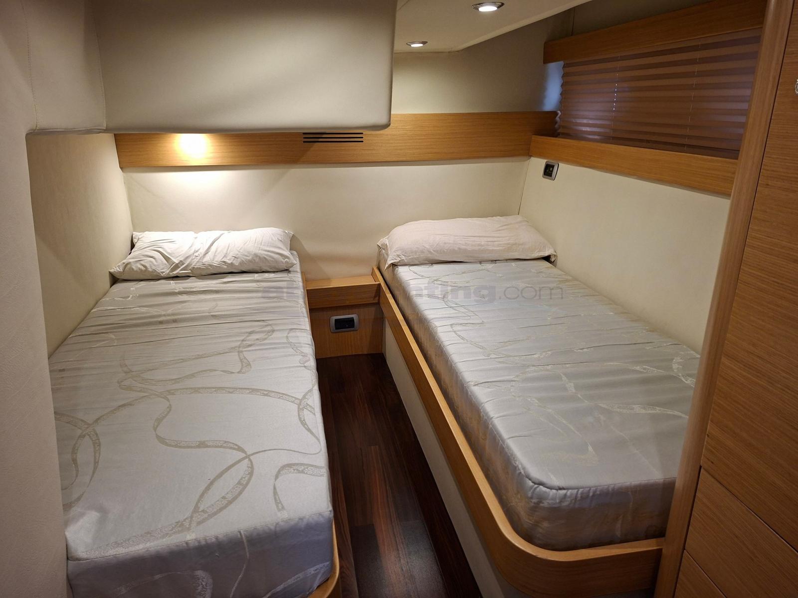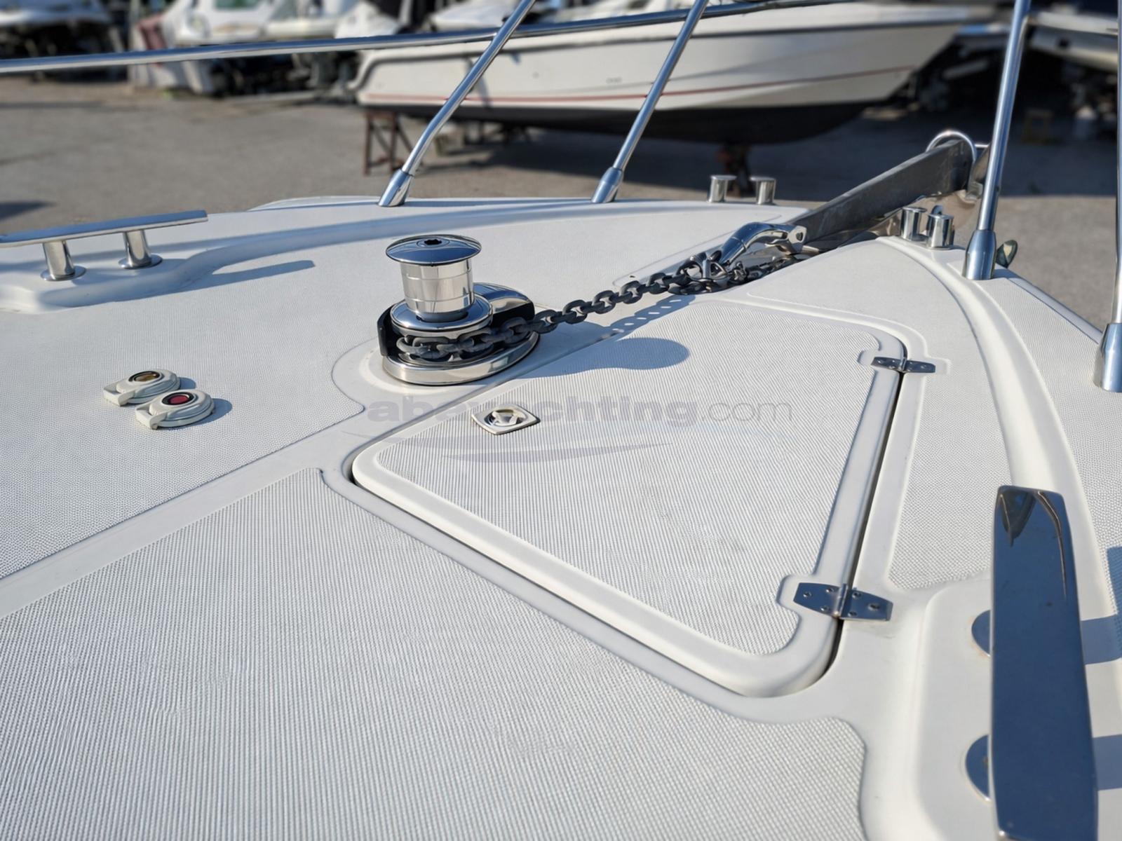 Alarme moteur (Elettronica Volvo Penta), Alternateur, Ancre (Bruce - Acciaio zincato 25Kg con snodo ritorto autoraddrizzante Inox), Eau sous pression, 4 Batteries (Varta - 2 x 190 Ah Servizi + 2 x 190 Ah Avviamento + 1 x 90 Ah Generatore), Chargeur de batterie (Quick - SBC Advanced plus 1450 24V 60A), 2 Câble d’alimentation à quai (16A), Couleur spéciale (3M - Wrapping Grigio chiaro), Douche de cockpit (Whale - hot/cold), Propulseur d'étrave (B.C.S. - TSL 150 20V 6.000W), Flaps électriques (Lenco), Hard top (Elettrico), Extincteur(s) fixe(s) (Estintori), Compresseur de plongée (Balma - Compressore 24lt), Indicateurs de flaps (Lenco), Éclairage de courtoisie, Spots sous-marins, Moniteur de batterie (Revalco - Motori + Servizi analogici), Défenses, Passerelle (Besenzoni - Elettroidraulica telescopica regolabile), Plateforme arrière (Idraulica ad immersione per alaggio/varo Dinhgy), Pompe de Vidange du Réservoir d’Eaux Usées, Pompe de cale automatique (Lubase - 3 x Bilge pump), Pompe de cale électrique (Lubase - 3 x Bilge pump), Pompe de cale manuelle, Porte latérale (Scorrevole doppia porta), Cockpit en teck, Prise de quai (1 x Servizi + 1 x Aria condizionata), Connexion eau sous pression à quai (Flojet), Rollbar, Guindeau électrique (Quick - Power ratio Tg 70), Echelle de bain (A scomparsa integrata nella piattaforma di poppa), table de cockpit (Teak apribile per aumentare posti a sedere + abbattibile per trasformare in prendisole), Table pliante de salon (Tavolino the + Tavolo pranzo), Corne, 2 Winch électrique arrière (Quick), Winch électrique avant (Quick - Power ratio Tg 70 integrato nel salpa ancora).