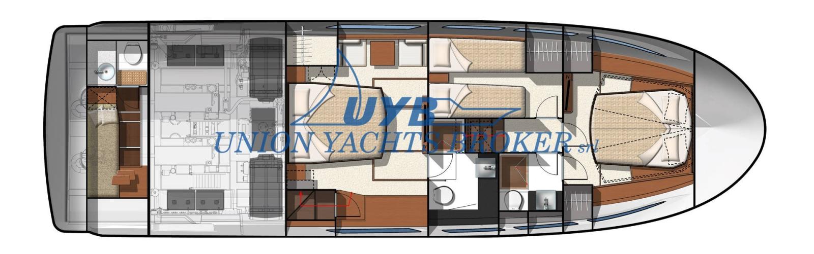 Douche de cockpit, Double barre à roue, Flaps électriques, Passerelle (idraulica), Plateforme arrière (strutturale in teak), Porte latérale, Prise de quai, Connexion eau sous pression à quai, Guindeau électrique, Echelle de bain, Winch électrique arrière.