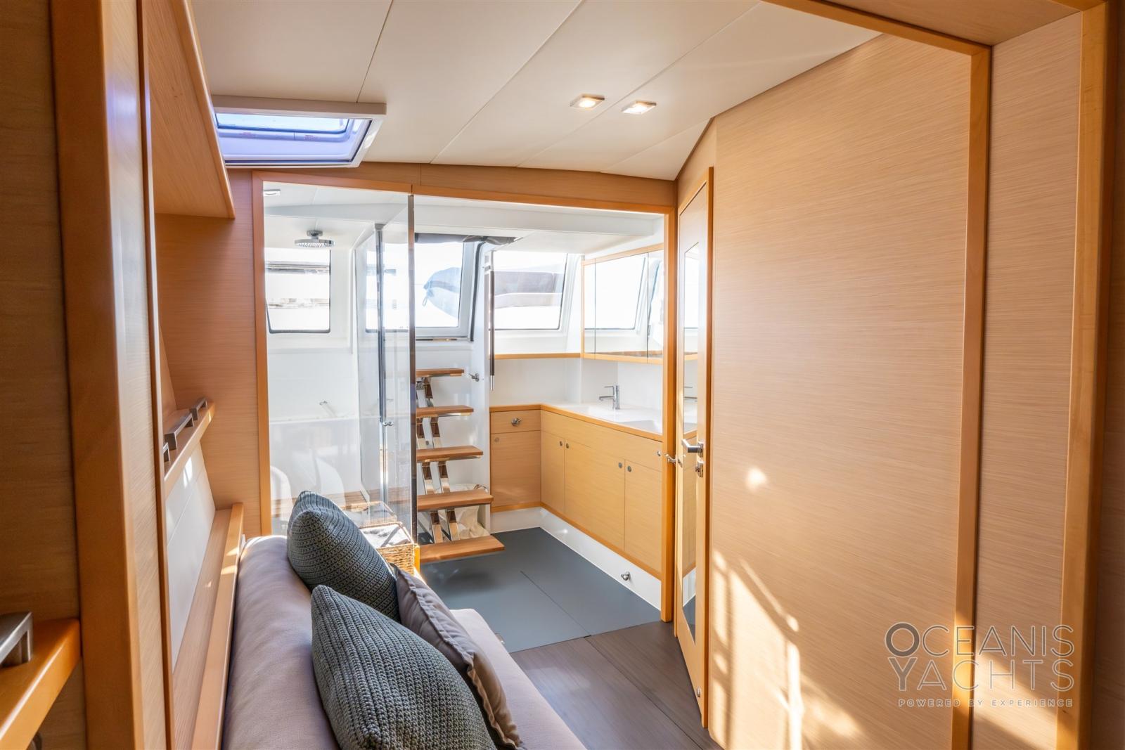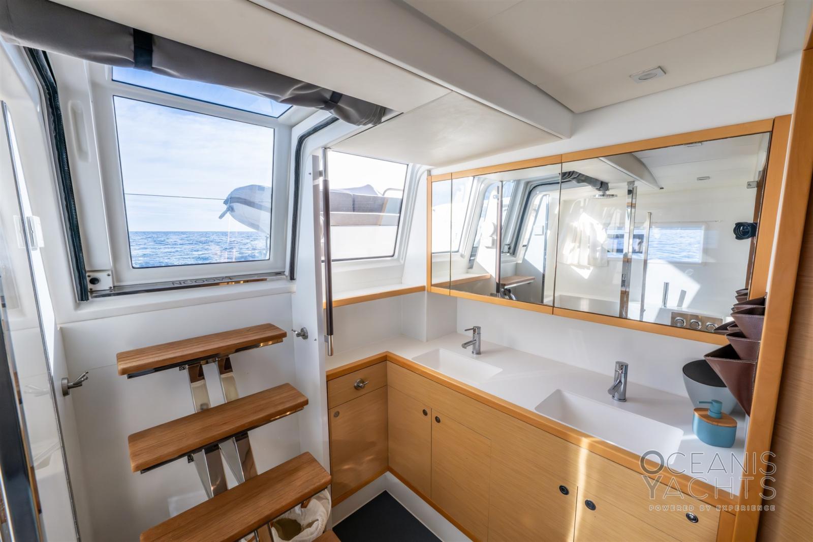 Eau Chaude, Ballon d'eau chaude, Air Conditionné, Dessalinisateur (200 LT/H), Cuve à eaux noires, Prises interieures 12v, Prises interieures 220v, Réservoir d'eau noire, Caméra vidéo, Toilettes électriques.