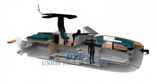Commande électrique, Ordinateur fixe de bord, Compteur de chaîne, DSC VHF, Plotter GPS, Panneau de commande, Instruments de mesure pour moteurs (Pack Mercury JPO (Joystick, autopilota, ancora digitale, nuovo modello timoneria elettrico sul V10)).