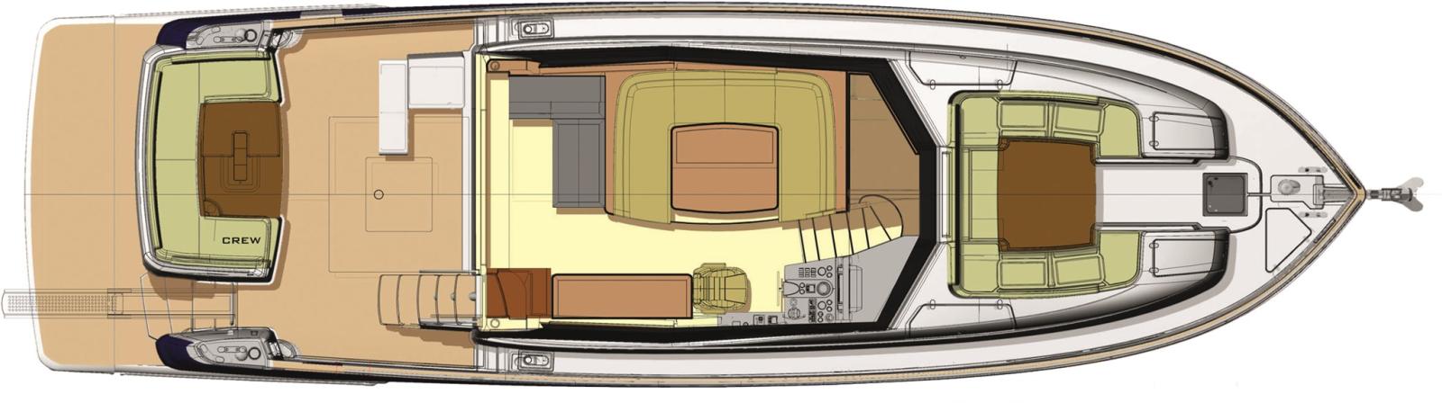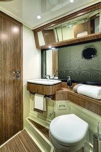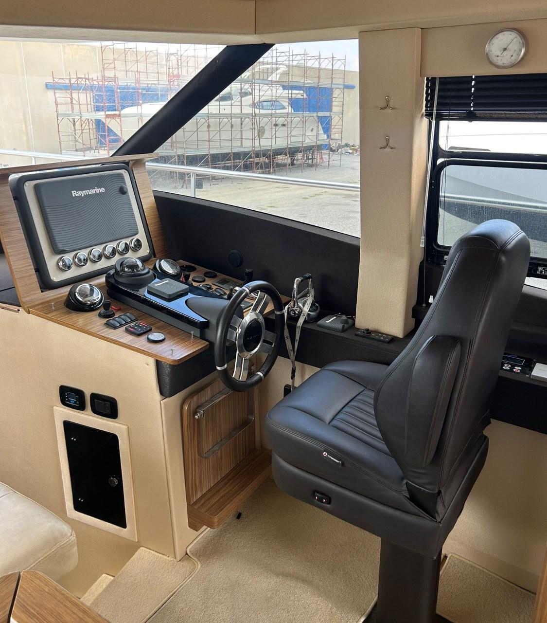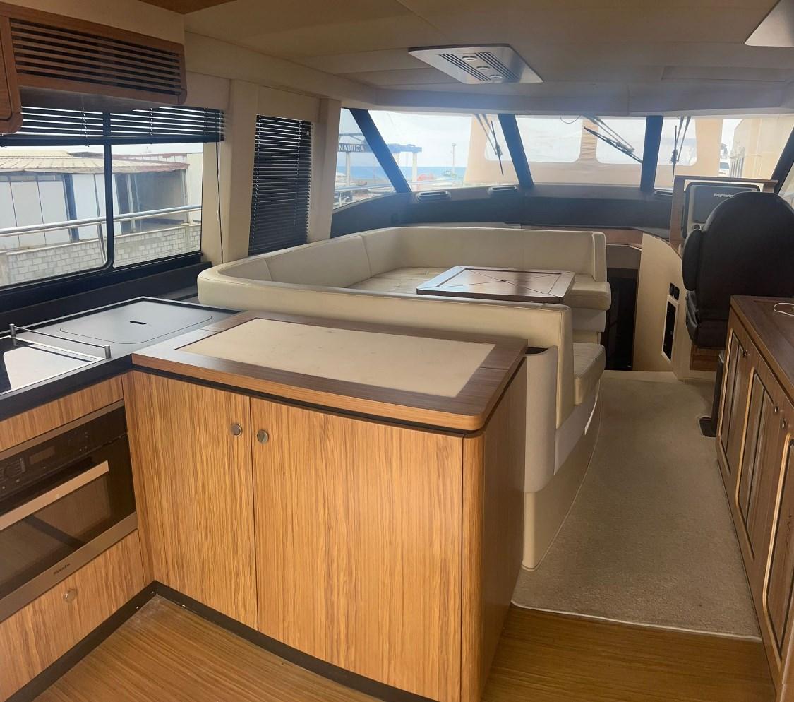 Alarme moteur, Alarme de pompe de cale, Passavant en teck, Flaps électriques, Indicateurs de flaps, Éclairage de courtoisie, Spots sous-marins, Passerelle, Plateforme arrière, Pompe de cale automatique, Pont en teck, Cockpit en teck, Stabilisateurs (Seakeeper), table de cockpit, Table pliante de salon, Corne, Winch électrique arrière.