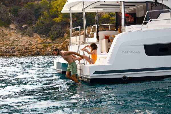 ÉTRAVES INVERSÉES ET DESIGN AUDACIEUX, ESPACES OPTIMISÉS, CIRCULATION AISÉE, NAVIGATION PERFORMANTE, *LE BALI CATSPACE EST LE PLUS COMPLET DES 40 PIEDS.*