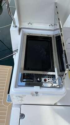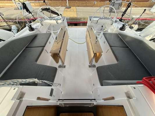 **Un Cockpit Spacieux qui facilite la circulation grace à ses deux tables repliables . Pensé pour le Plaisir : son frigo et sa plancha Eno créeront de beaux moments de convivialité.**